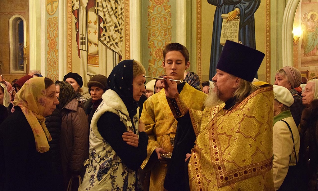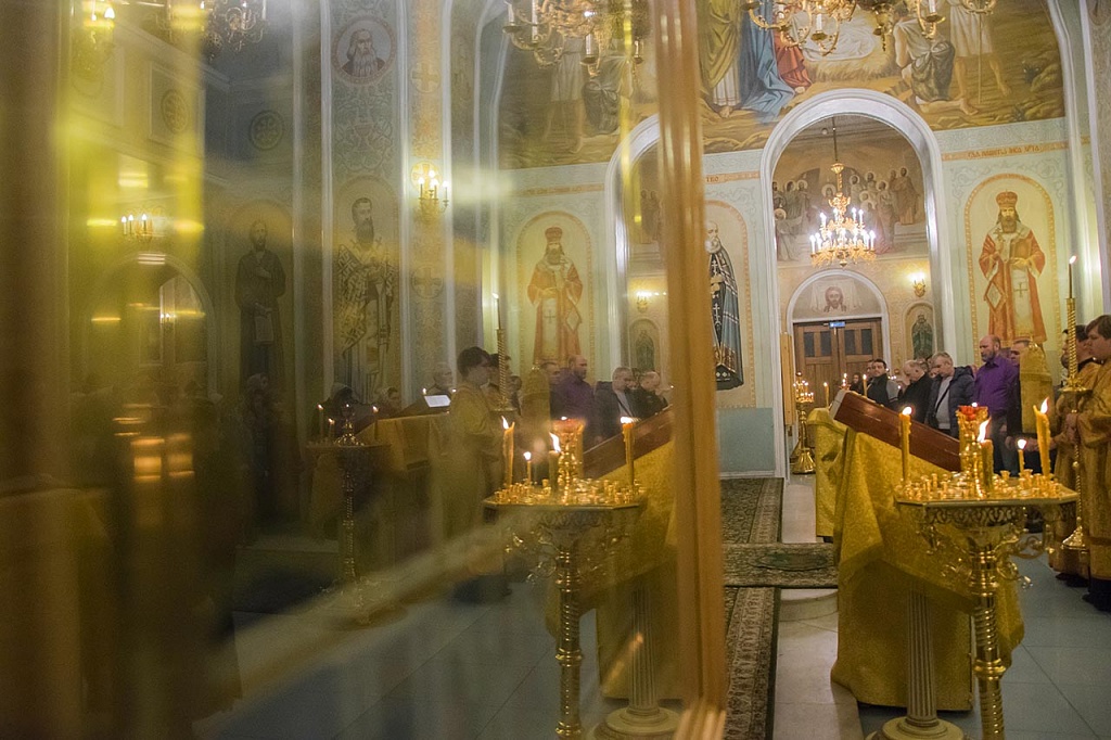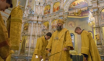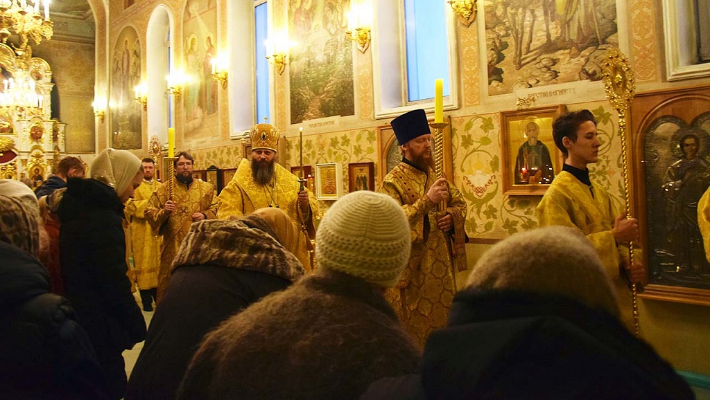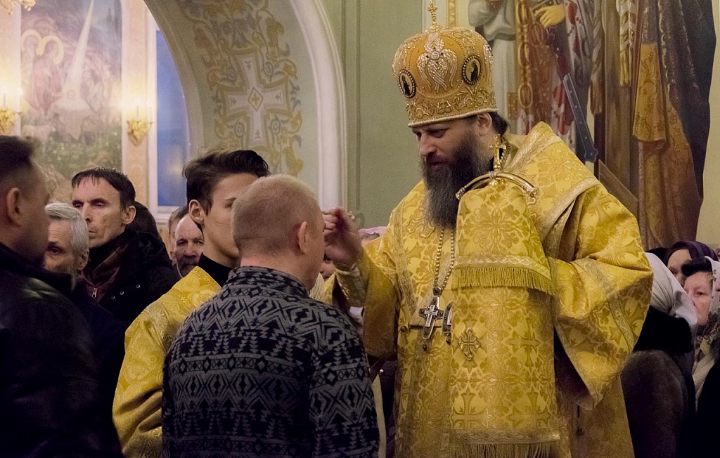 Архипастырю сослужили клирики собора во главе с ключарем, протоиереем Владимиром Маничевым. Пришедших на службу владыка Никодим помазал освященным елеем.