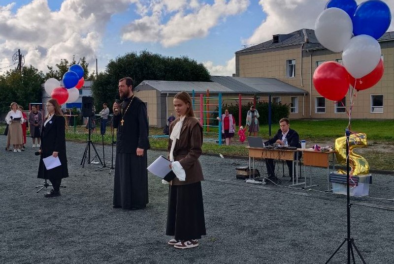 1 сентября двор школы гимназии во имя святого праведного Смеона Верхотурского наполнился праздничной суетой: нарядные гимназисты, с букетами цветов в руках, и их родители собрались на торжественную линейку.