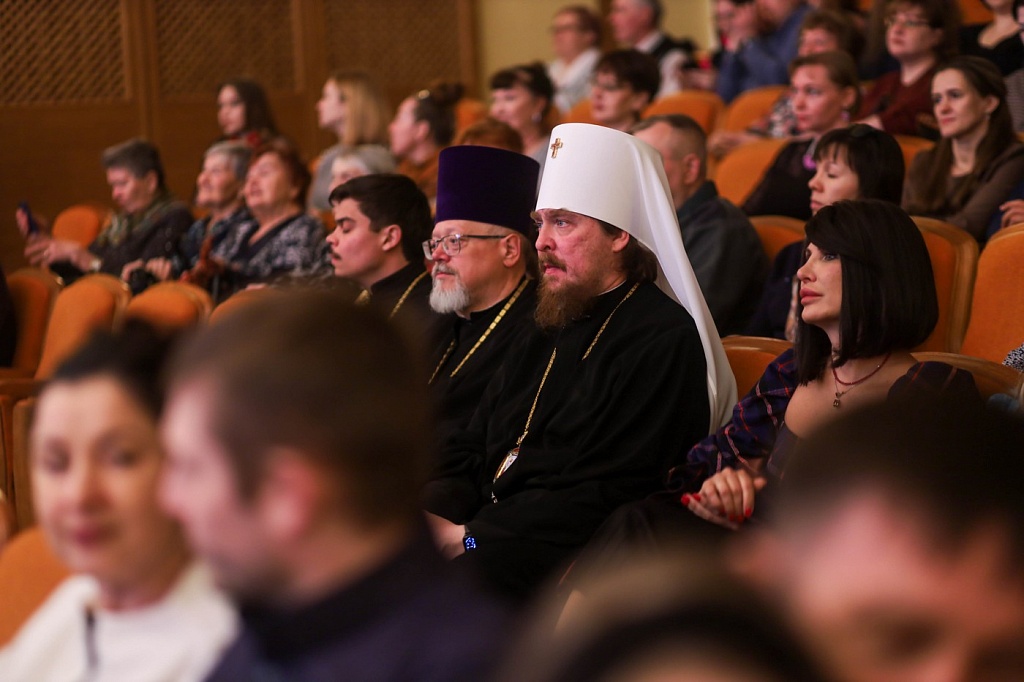 К зрителям и артистам обратился глава Челябинской митрополии. Владыка Алексий приветствовал зал возгласом «Христос Воскресе!» Он сказал, что на Украине и на Донбассе идет сейчас борьба со злом, которое, казалось, было побеждено еще в прошлом веке. А праздник Пасхи напоминает миру о том, что добро непременно преодолеет зло, и вдохновляет на продолжение борьбы.