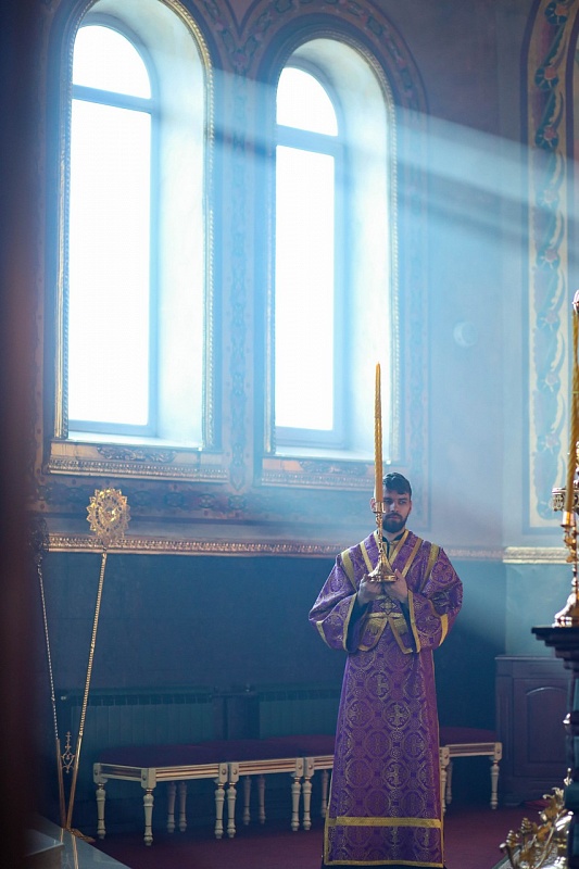 На Литургии был прочитан отрывок из Евангелия от Марка (Мк. 2:14-17), в котором говорится о призвании Господом Левия Алфеева, сборщика податей, к апостольскому служению.