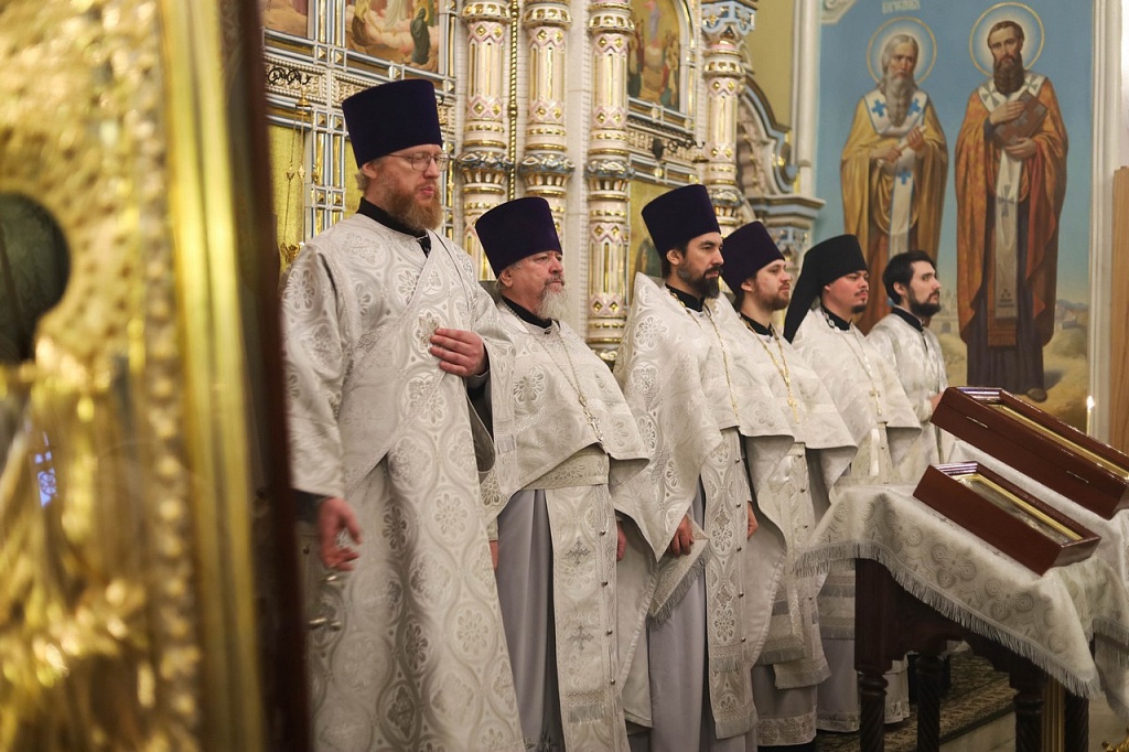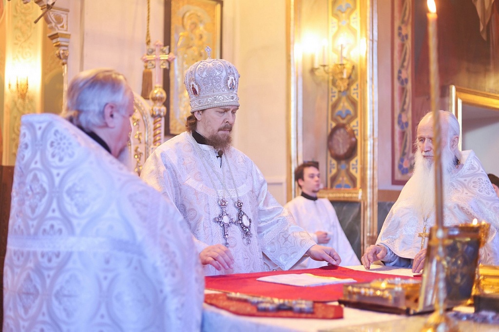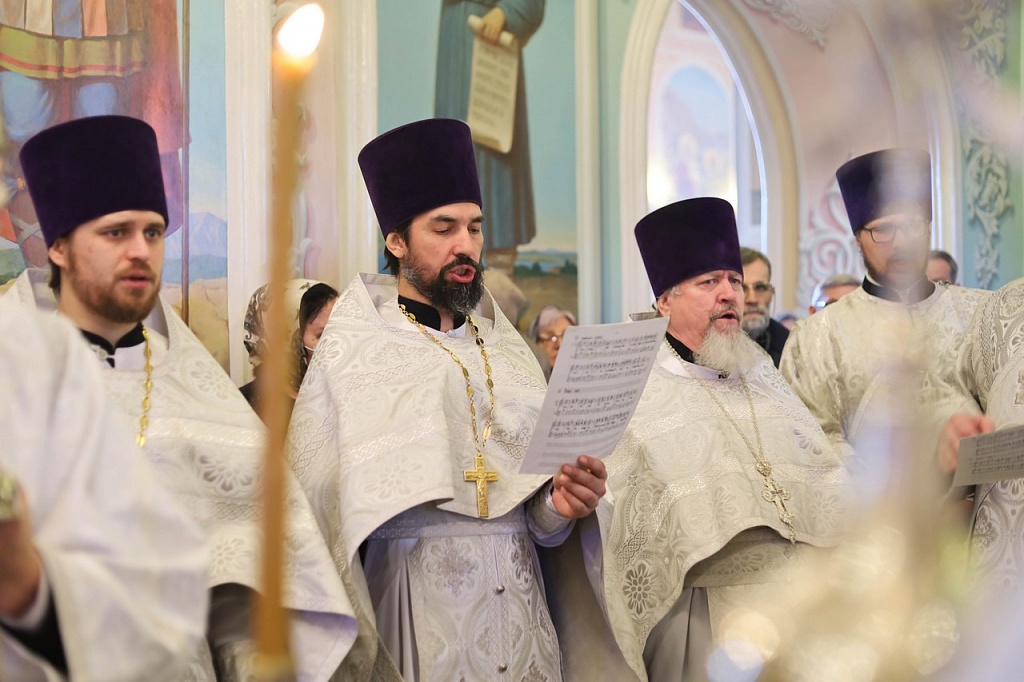 Правящий архиерей призвал неустанно благодарить Господа и усиленно молиться, чтобы все наши дела и помышления были направлены к вечному Спасению. Владыка также призвал всегда испытывать себя, насколько наши дела угодны Богу, учась этому у святых угодников.