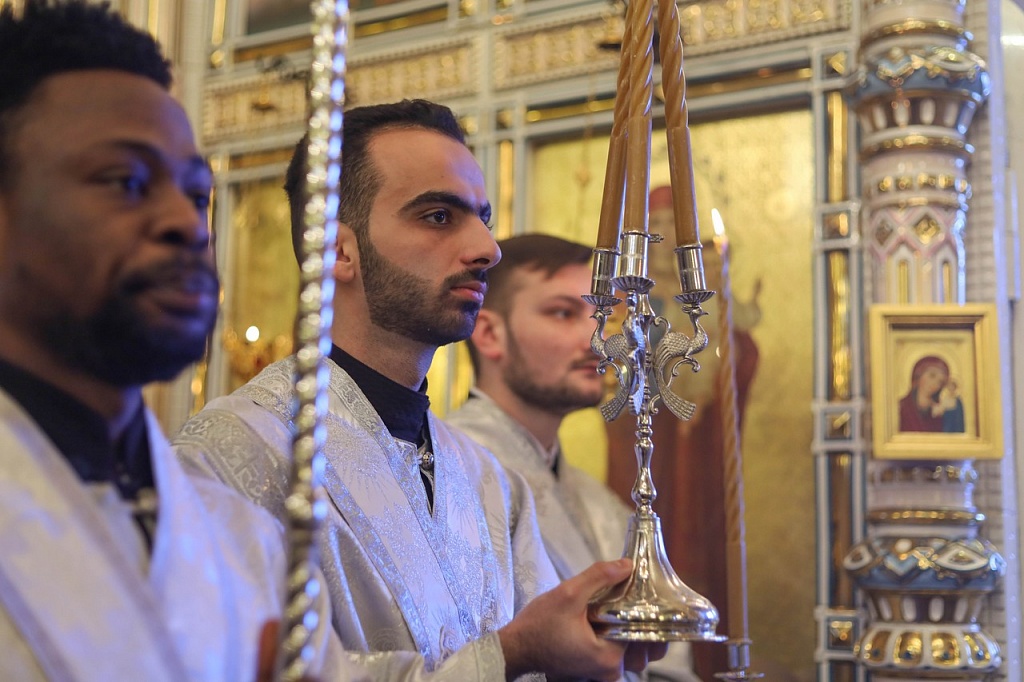 На Литургии был прочитан отрывок из Евангелия от Луки (Лк. 2: 1-20), повествующий об обстоятельствах Рождества Спасителя в Вифлееме, в пастушеской пещере. Богомладенец был положен в ясли, куда насыпали корм животным. Ангелы возвестили об этом великом событии пастухам, воспевая песнь: «Слава в вышних Богу, и на земле мир, в человеках благоволение».
