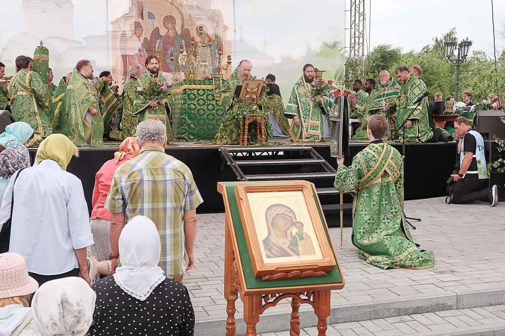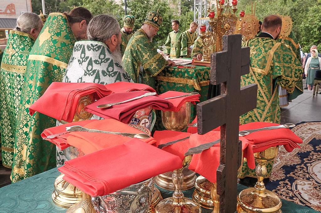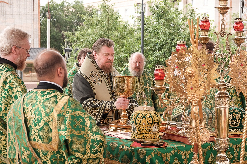 Сегодня, 23 июня, в День Святой Троицы митрополит Челябинский и Миасский Алексий, епископ Магнитогорский и Верхнеуральский Зосима, епископ Златоустовский и Саткинский Петр, епископ Троицкий и Южноуральский Павел возглавили Божественную литургию на площади у храма святого великомученика Димитрия Солунского в Троицке. Архиереям Челябинской митрополии сослужили секретарь Челябинской епархии протоиерей Игорь Шестаков, благочинный Архиерейского благочиния Челябинской епархии протоиерей Борис Кривоногов и сонм духовенства. Сразу после праздничного богослужения архиереи и духовенство совершили вечерню с коленопреклонными молитвами.