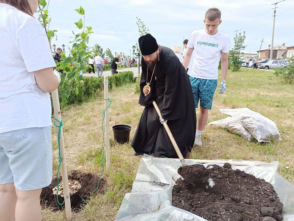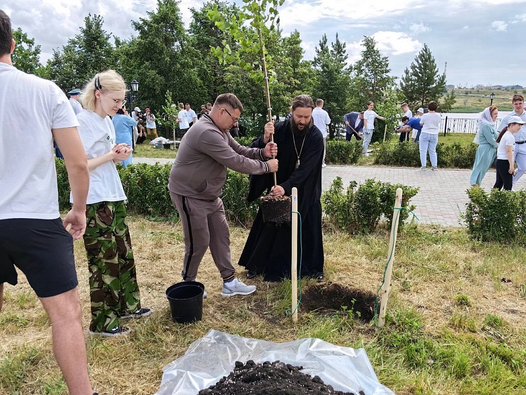 Между тем, в самом солнечном городе Южного Урала продолжаются торжества, посвященные празднованию Пятидесятницы. Перед началом торжественного открытия II Регионального фестиваля традиционных духовных ценностей «Троица в Троицке» правящие архиереи Челябинской митрополии, представители органов власти и общественных организаций, активисты троицкой городской организации «Движение Первых» у Свято-Троицкого кафедрального собора высадили березовую аллею. А после осмотрели ход реставрационных работ в главном храме города Троицк.