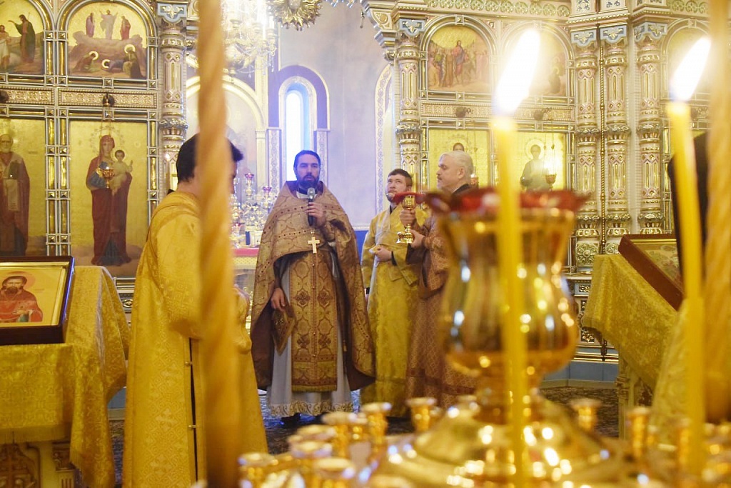 В проповеди перед причащением верующих клирик Свято-Симеоновского кафедрального собора иерей Андрей Григорьев рассказал о подвиге святых мучеников Акиндина, Пигасия, Аффония, Елпидифора, Анемподиста, пострадавших за веру в IV веке в Персии.