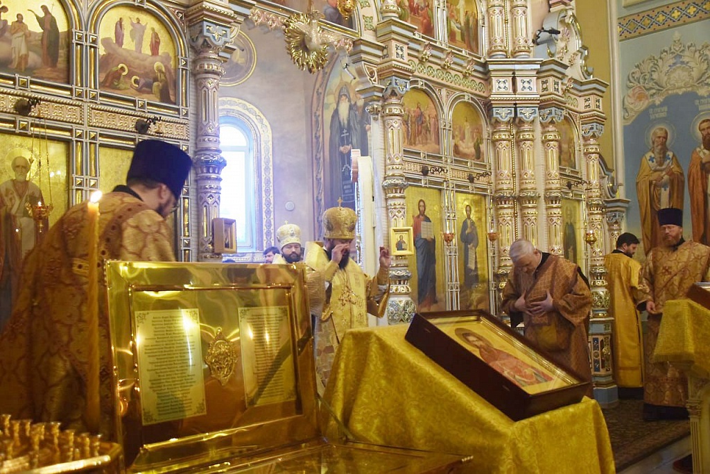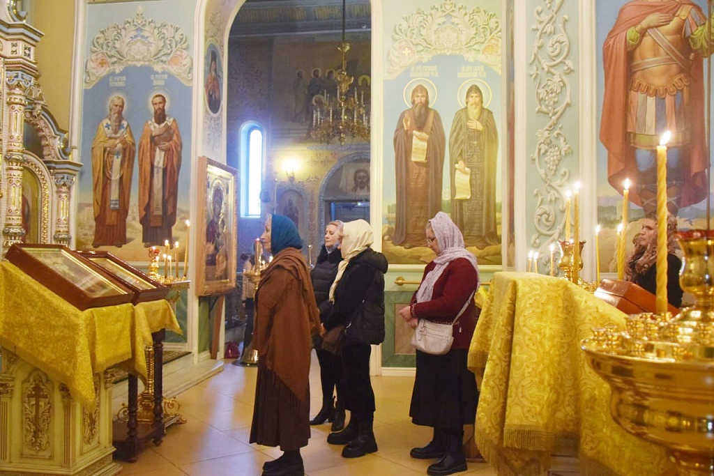 На богослужении был прочитан отрывок из Евангелия от Луки, рассказывающий о том, как Христос обличал двуличие фарисеев. Они ревностно давали десятину на Храм даже с мяты, руты и всяких овощей, чтобы народ почитал их за строгих хранителей истины, но пренебрегали духовными и нравственными требованиями Моисеева Закона.