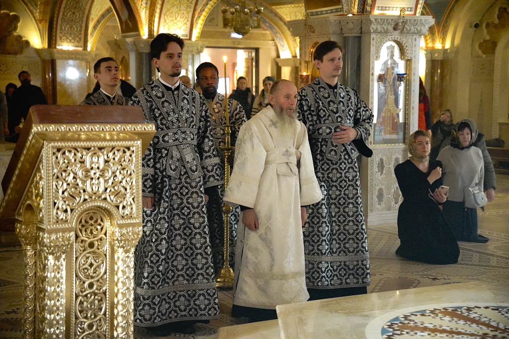 Литургия Преждеосвященных Даров – особое великопостное богослужение, в него входят утреня, часы, изобразительны и вечерня с Литургией Преждеосвященных Даров, на которой верующим предлагаются Святые Дары, освященные на воскресной Литургии и сохранявшиеся на Святом Престоле в дарохранительнице.
