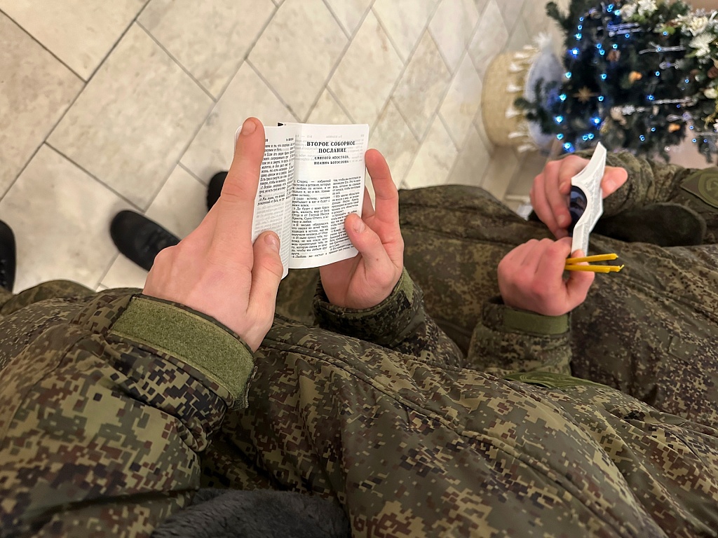 Солдат встретили помощники настоятеля Антон Ложкин, отвечающий за работу с военнослужащими и молодежью, и миссионер Виталий Рябченко.