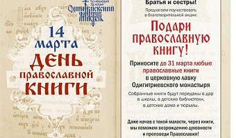 В преддверии Дня православной книги, который отмечается 14 марта, в Одигитриевском монастыре проходит благотворительная акция «Подари православную книгу». Жителей города приглашают поделиться православными изданиями с теми, кому они могут быть особенно нужны.