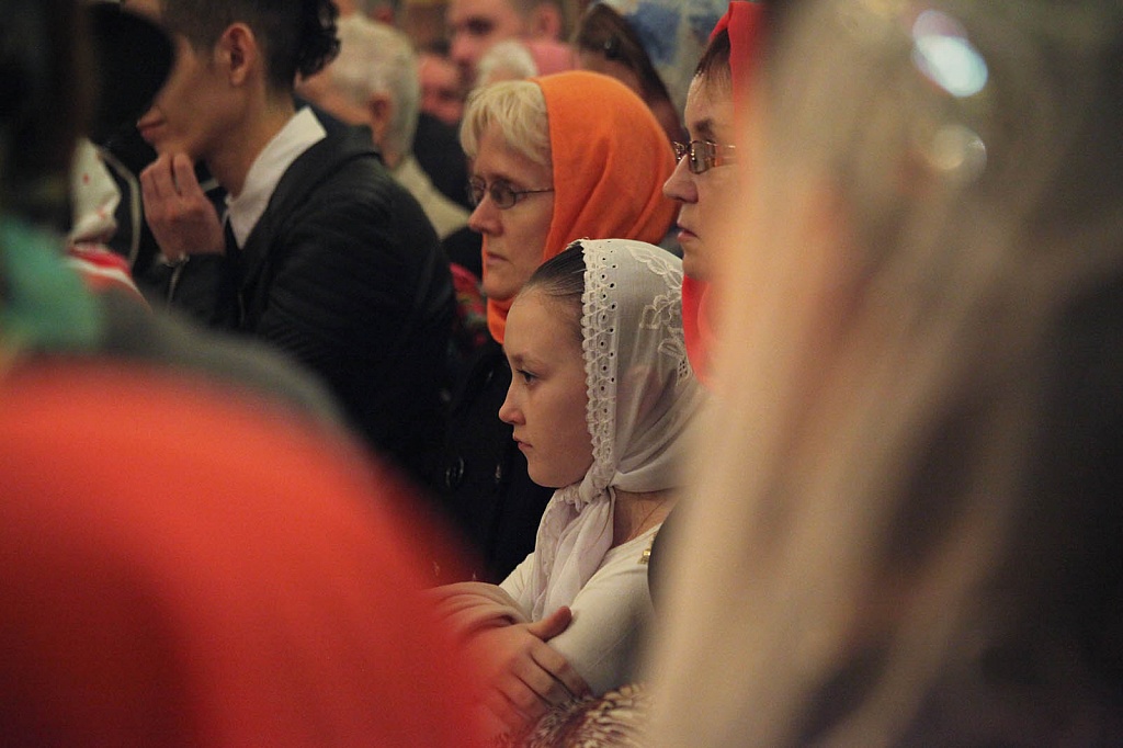 За пасхальным богослужением читали первую главу из Евангелия от Иоанна: «В начале было Слово, и Слово было у Бога, и Слово было Бог…» В память о том, что апостолы проповедовали Евангелие по всему миру, на литургии этот отрывок зачитали на церковнославянском, русском, греческом, латинском, английском, немецком и французском языках.