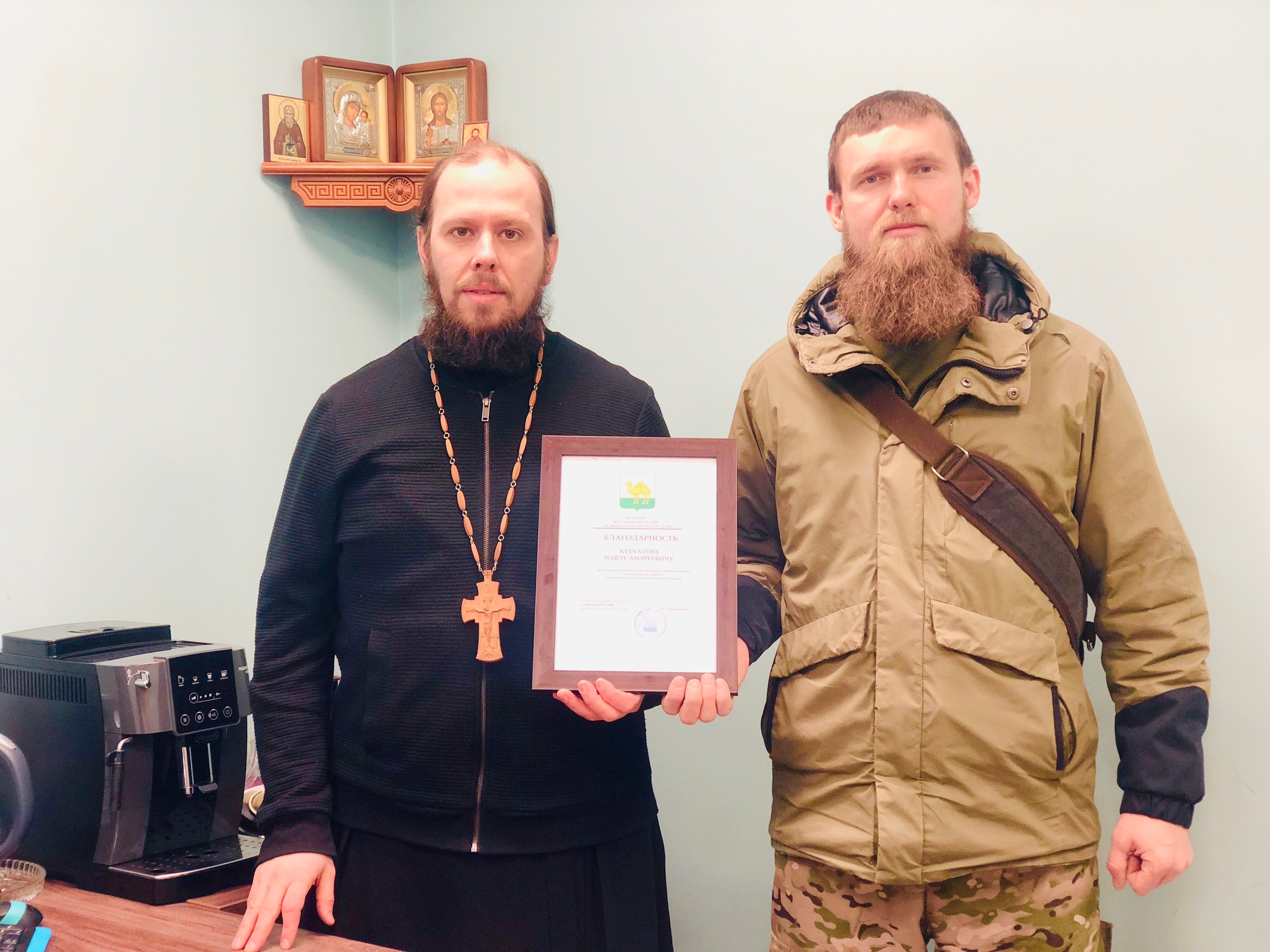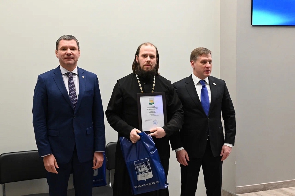 Награду координатору движения «Добровольцы Тыла — Челябинск» Эдуарду Умовскому и его команде передал руководитель отдела социального служения Челябинской епархии иерей Павел Курбатов.