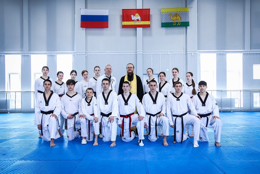 Руководитель отдела по физической культуре и спорту Челябинской епархии иерей Андрей Ковшевный освятил Центр тхэквондо СШОР «Корё»