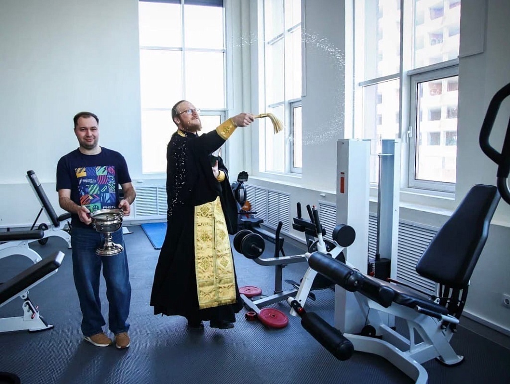 Священник окропил святой водой тренировочные залы и административные помещения. Ребятам отец Андрей объяснил смысл молитвы, произносимой в ходе освящения: «В молитве мы просим Бога направить в освещаемое место Ангела Хранителя, чтобы он помогал в добрых намерениях и охранял от зла».