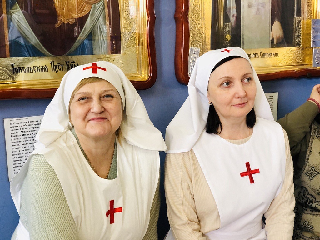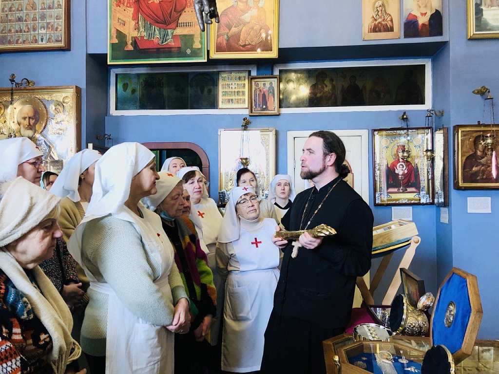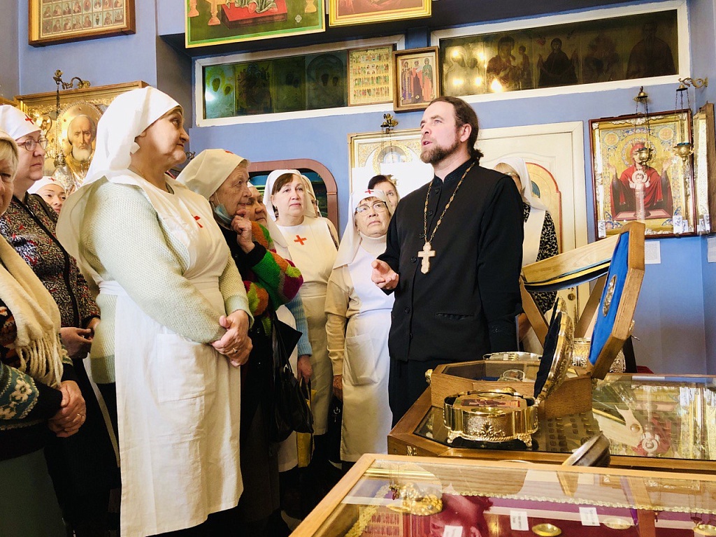 Настоятель храма иерей Евгений Лучинин провел для гостей экскурсию, рассказав об истории и особенностях храма. После этого встреча продолжилась за чаепитием, где в теплой и неформальной обстановке сестры милосердия делились опытом и моментами своего служения.