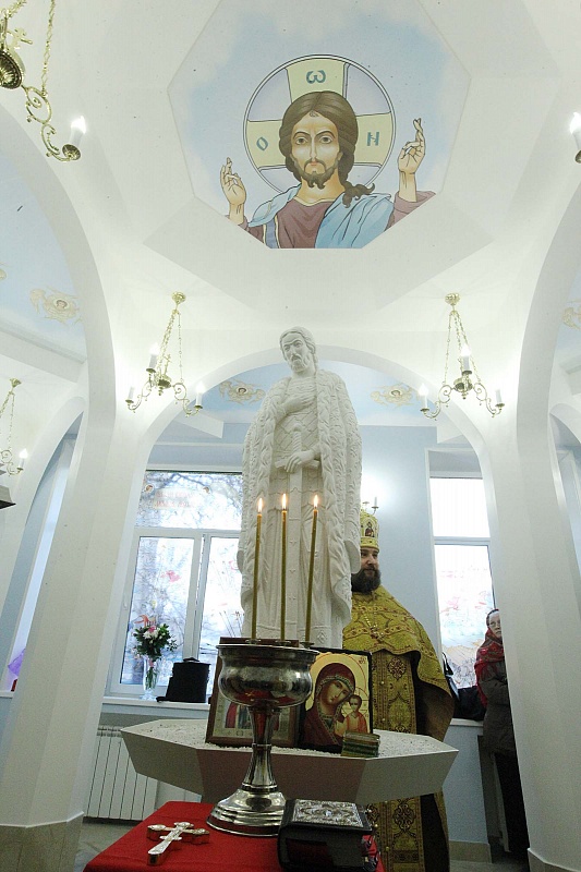 Но вернемся в сегодняшний день. Сразу после крестного хода по благословению Высокопреосвященнейшего митрополита Никодима отец Борис совершил освящение новой часовни благоверного князя Александра Невского. Открылась она на территории аптеки «Доктор Алвик» по адресу: Свердловский проспект, 10.