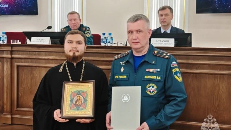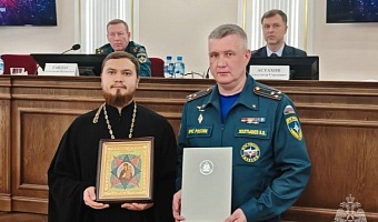 Клирик Свято-Симеоновского кафедрального собора иеромонах Иосиф (Реутов) принял участие в подведении итогов деятельности ГУ МЧС России по Челябинской области за 2025 год. Он зачитал поздравление митрополита Челябинского и Миасского Алексия и передал спасателям икону Божией Матери «Неопалимая Купина».