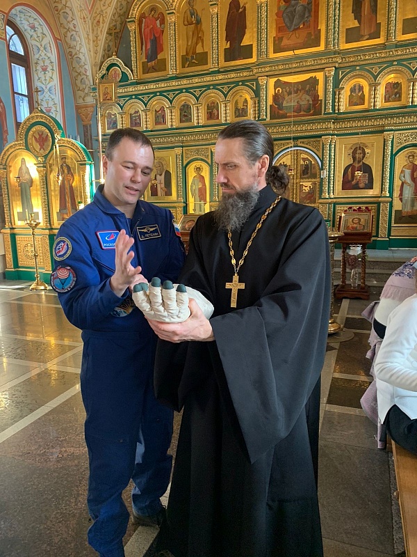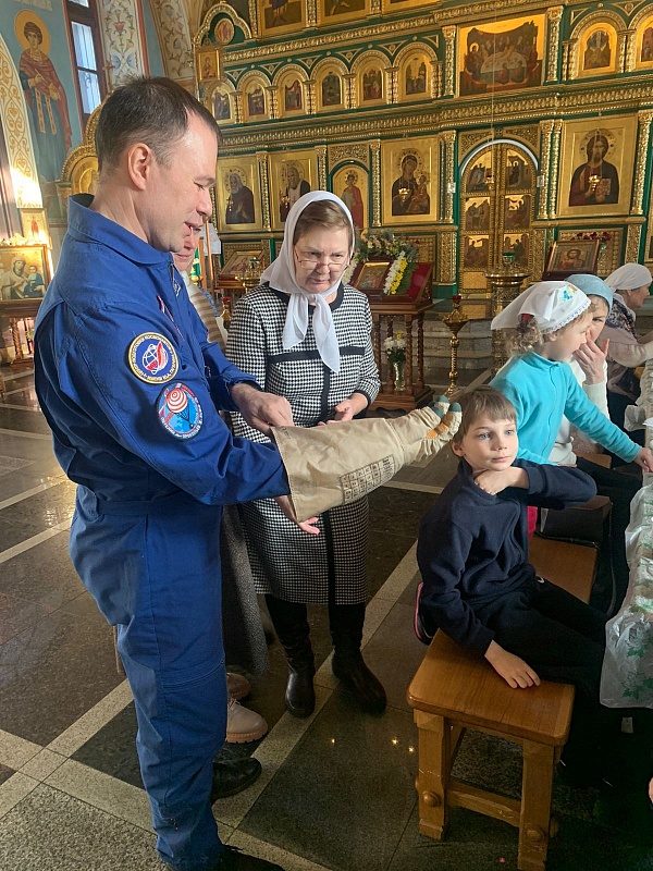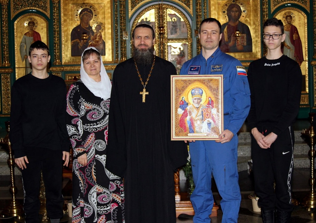 Дмитрий Петелин вместе со своей мамой остался после Божественной литургии в минувшее воскресенье и рассказал прихожанам подробности своего пребывания в космосе. Во всём его рассказе рефреном звучала благодарность Господу за то, что Он хранит его семью, экипаж, помогает справиться со всеми поставленными задачами. Не случайно их корабль стартовал в день Рождества Пресвятой Богородицы, а приземлился через год в день Крестовоздвижения. В космос Дмитрий брал икону Спасителя, которую в далеком детстве подарила ему бабушка. Накануне вылета он приезжал к родителям и взял святой образ с собой.