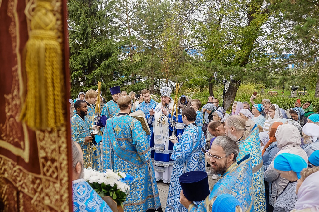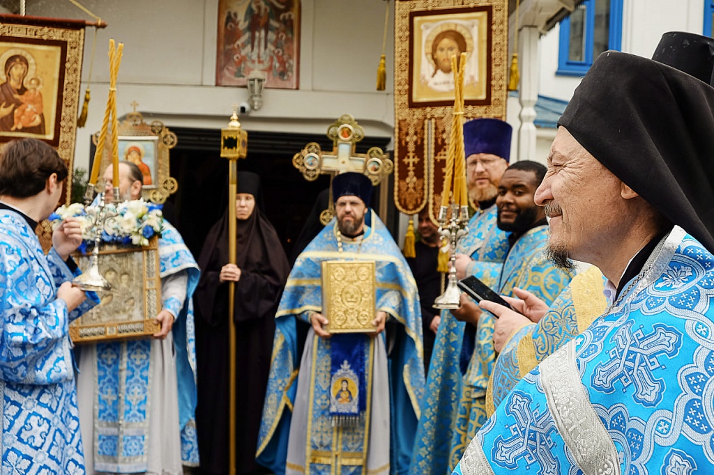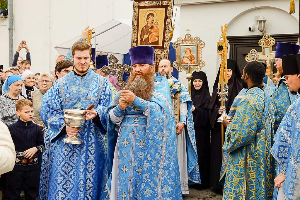 После Божественной литургии вокруг храма и по территории монастыря был совершен Крестный ход с чтением Евангелия и кроплением святой водой. После праздничного шествия перед образом Смоленской иконы Божией Матери «Одигитрия» был отслужен молебен. Правящий архиерей сердечно поздравил прихожан с престольным праздником, пожелал всем доброго здравия и Божьего благословения. Также владыка отметил, что сегодня, в праздничный день очень многие прихожане за Литургией причастились святых Христовых Таин.