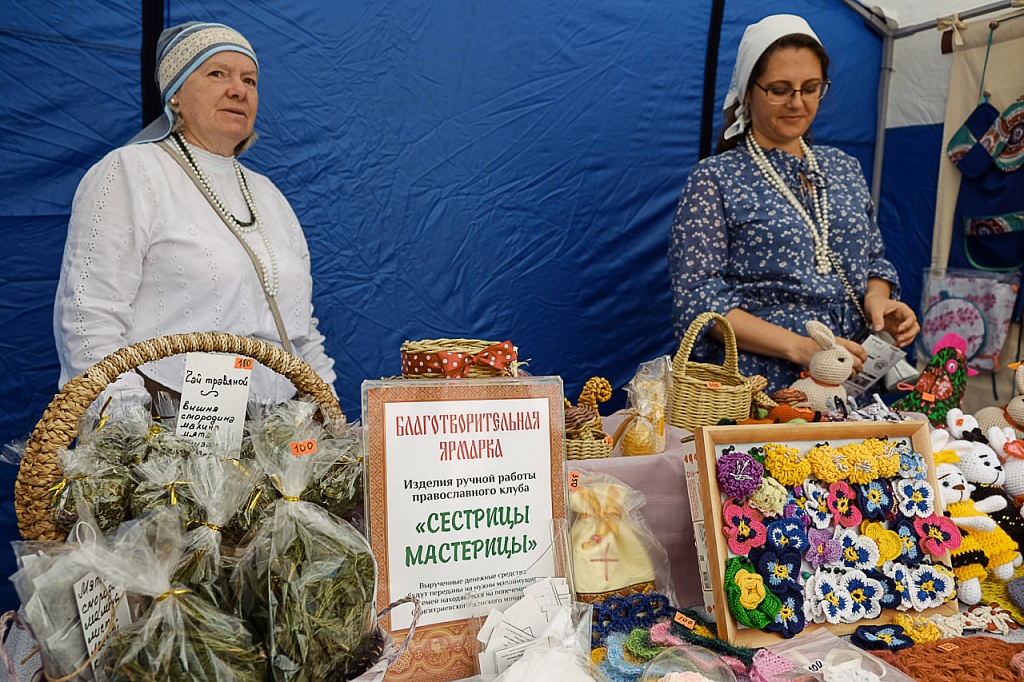 По завершении богослужения во дворе Одигитриевского монастыря для прихожан и гостей обители состоялось праздничное чаепитие, с пением духовных и народных песен.