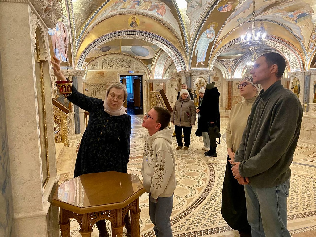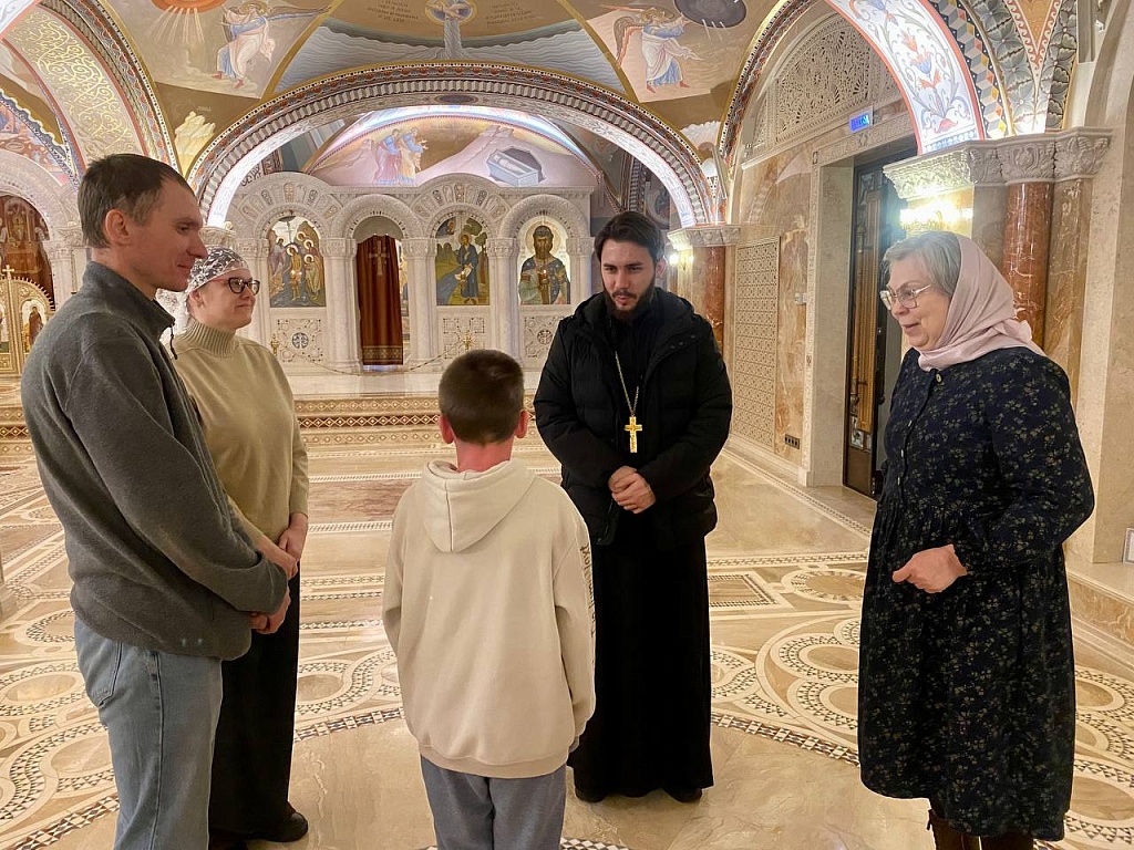 Чтобы вручить подарок, мальчика с родителями пригласили в кафедральный собор Рождества Христова. Хранитель музея истории Православия на Южном Урале Анна Усманова провела обзорную экскурсию. В новом соборе семья побывала впервые. Все остались под впечатлением.