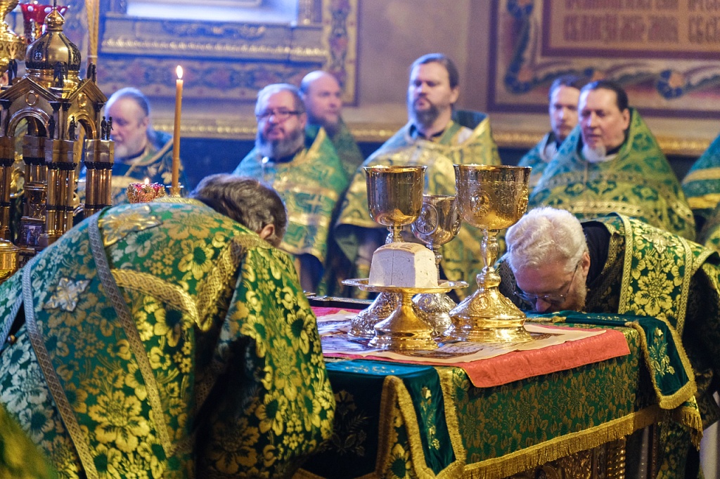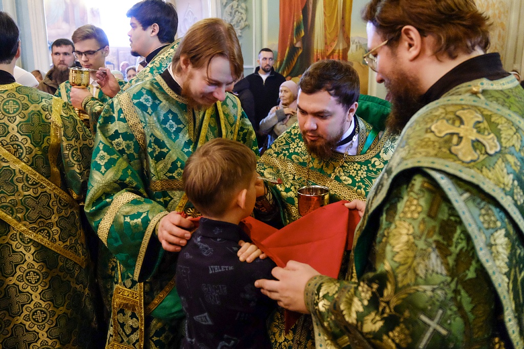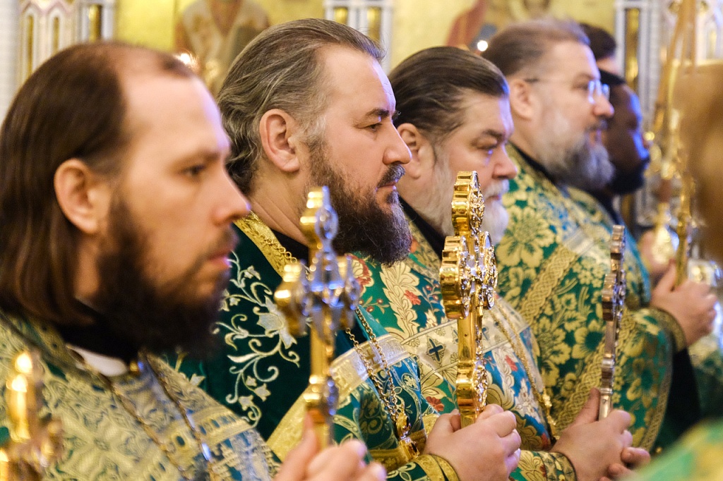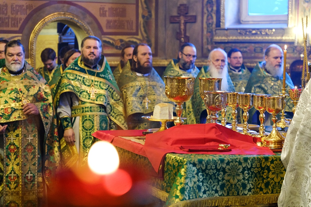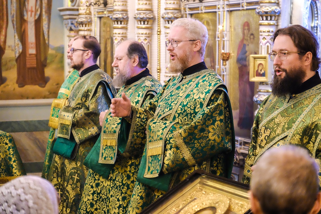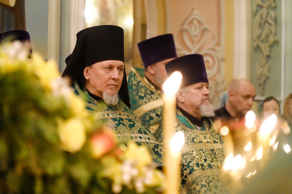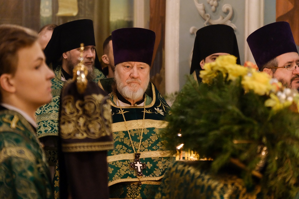 Правящему архиерею сослужили секретарь Челябинской епархии протоиерей Игорь Шестаков, благочинный Архиерейского благочиния протоиерей Борис Кривоногов, благочинный Центрального благочиния протоиерей Сергий Севастьянов, ключарь Свято-Симеоновского собора протоиерей Владимир Маничев, сонм духовенства Челябинской епархии. За богослужением молились настоятель Богоявленского монастыря Челябинска игумен Нестор (Болков) и глава Челябинска Алексей Лошкин.