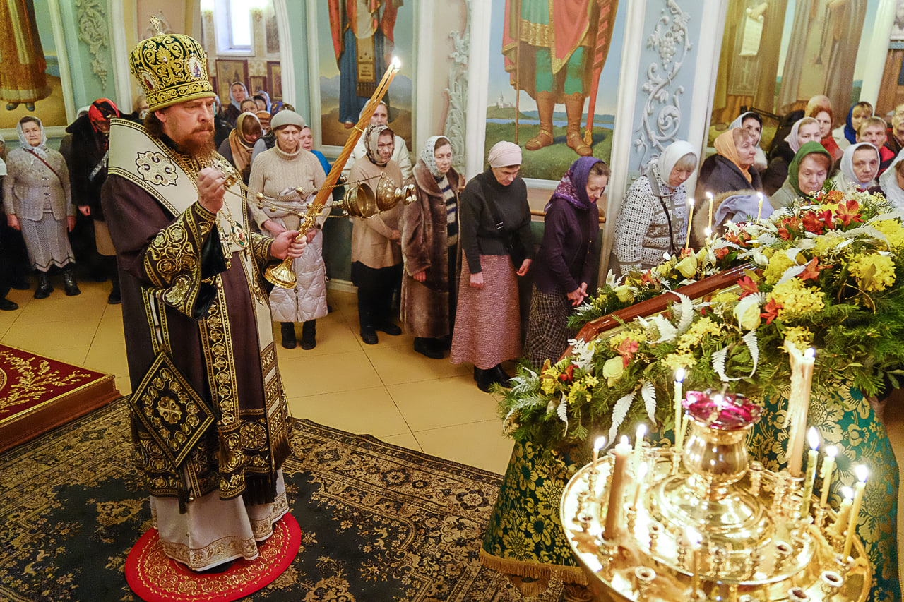 После Литургии владыка Алексий и духовенство совершили молебен на начало нового года по гражданскому календарю: были прочитаны молитвы Господу Богу и праведному Симеону Верхотурскому, пропето величание прославляемому Уральскому святому.