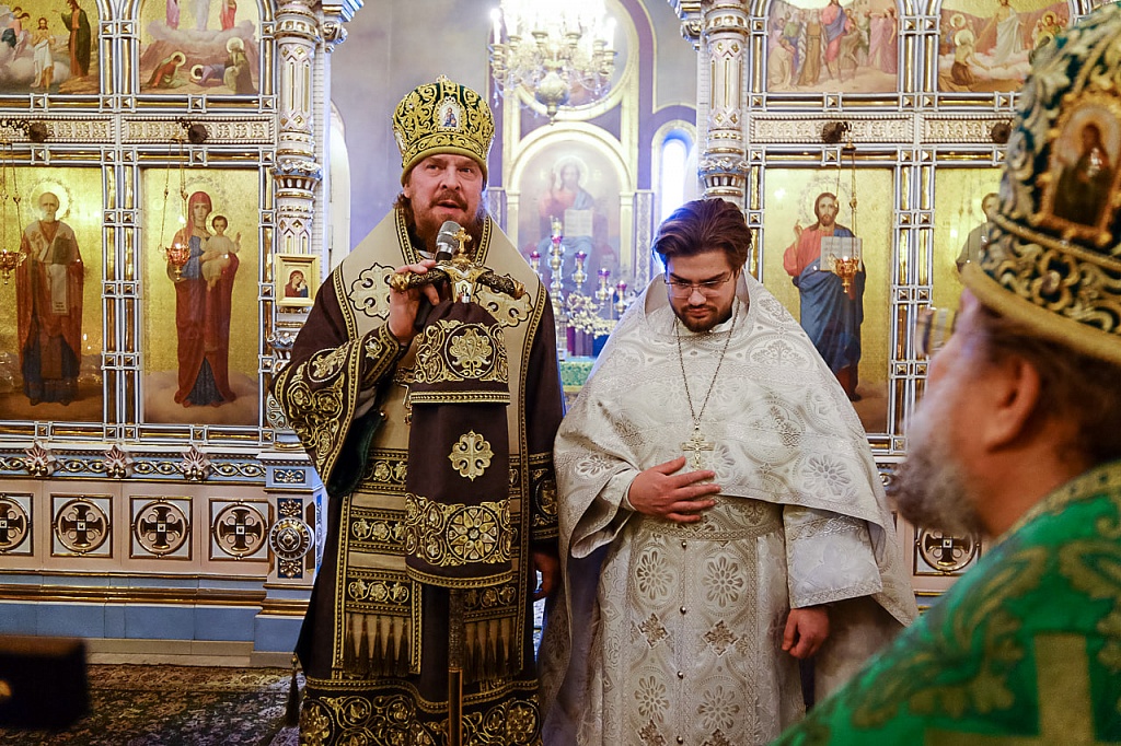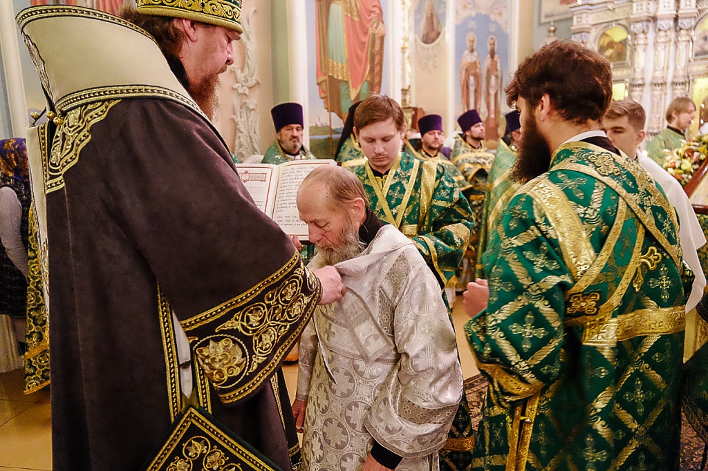После молебна правящий архиерей сердечно поздравил посвященного сегодня во пресвитера отца Симеона Лаптева, сказав: «Радуемся, что Церковь наша прирастает священнослужителями. Отец Симеон – уроженец Челябинска, окончил Московскую духовную школу и вернулся в родной город, чтобы здесь трудиться для Церкви Божией». Также за Литургией владыкой была совершена хиротесия (посвящение во чтеца и иподиакона) над Стефаном Оивчиком. Архиерей благословил посвящаемого возложением рук на его главу центре храма в ознаменование утверждения в церковной должности.
