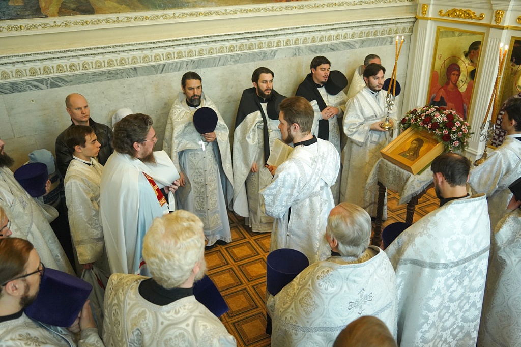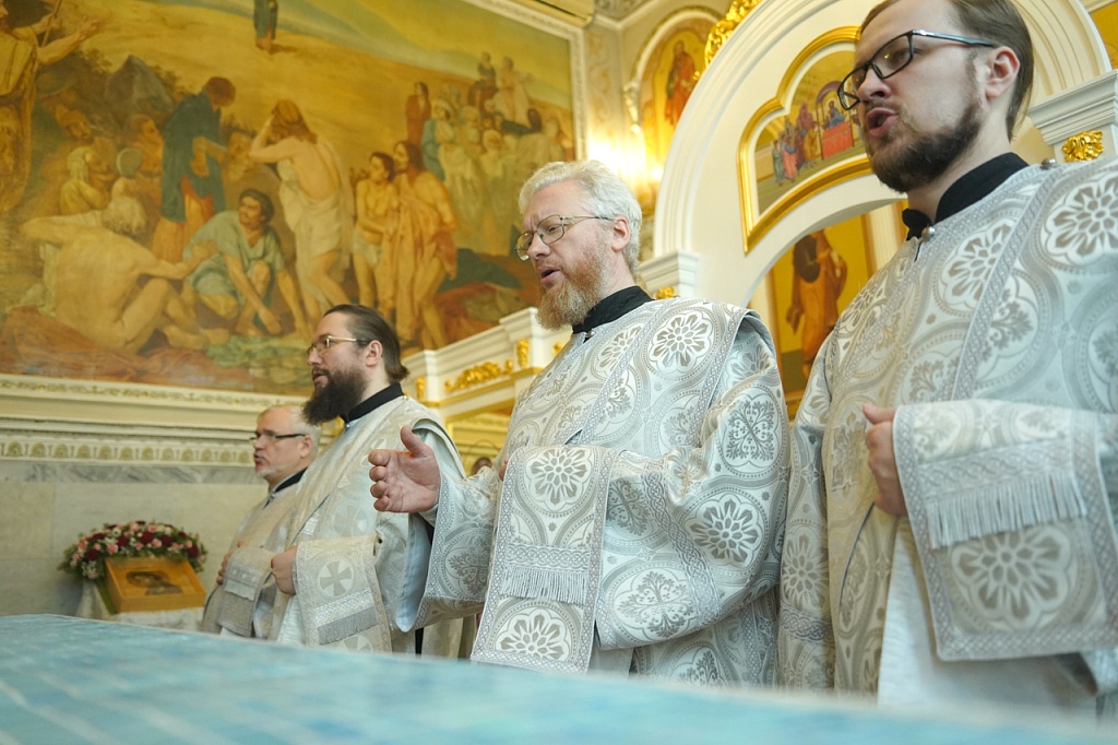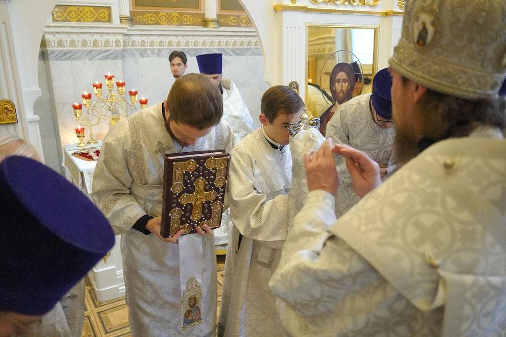 На Литургии был прочитан отрывок из Евангелия от Иоанна (Ин.1:29-34), в котором говорится от том, как пророческим духом Иоанн узнал в Иисусе Христе Мессию. Иоанну Крестителю дано было увидеть сходящего на Иисуса Христа Духа Божия в виде голубя и услышать голос Бога Отца, свидетельствовавшего о Сыне возлюбленном. Таким образом, Иоанн стал свидетелем явления Святой Троицы.