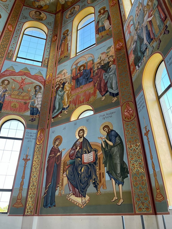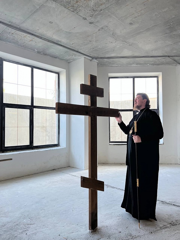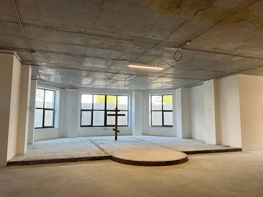 Возведение храма началось летом 2019 года. В декабре 2021-го освятили купола и кресты. Храм возвышается над городом на 65 метров. Одновременно молиться в нём смогут до 500 человек.