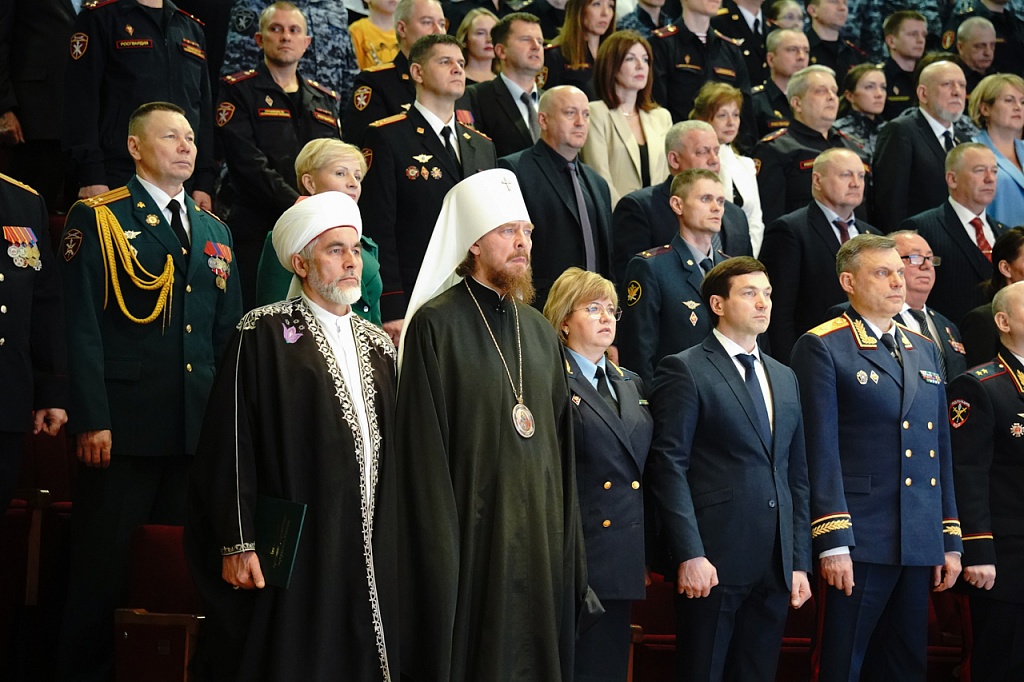 Митрополит Алексий выразил признательность личному составу и ветеранам за высокий профессионализм, верность присяге и мужество. Он подчеркнул, что служение в Росгвардии связано с особой ответственностью и требует силы духа, а защита ближних является исполнением христианской заповеди любви.