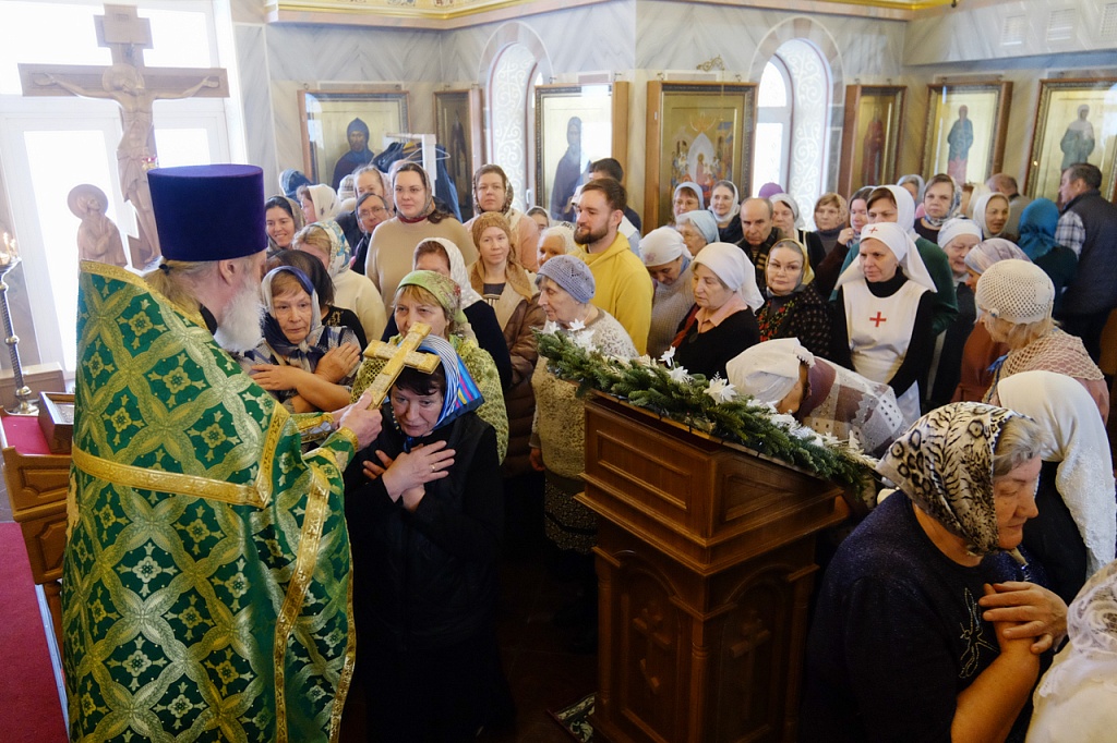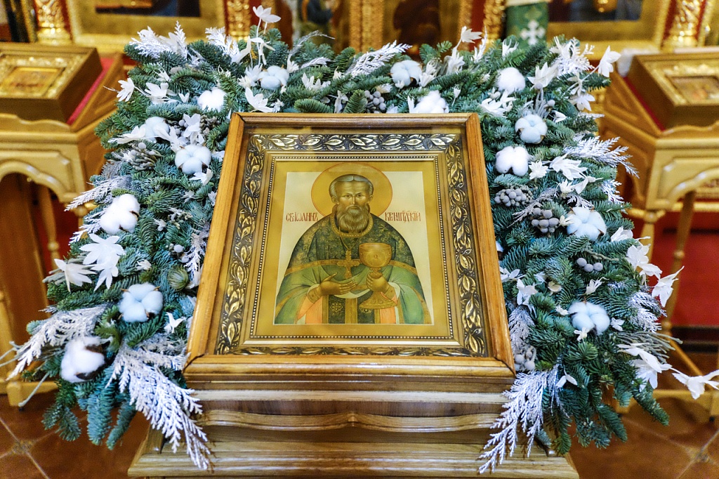 Для прихода сегодня – престольный праздник: нижний придел храма освящен в честь святого Иоанна Кронштадтского, там же хранятся его скуфья и рукавичка.