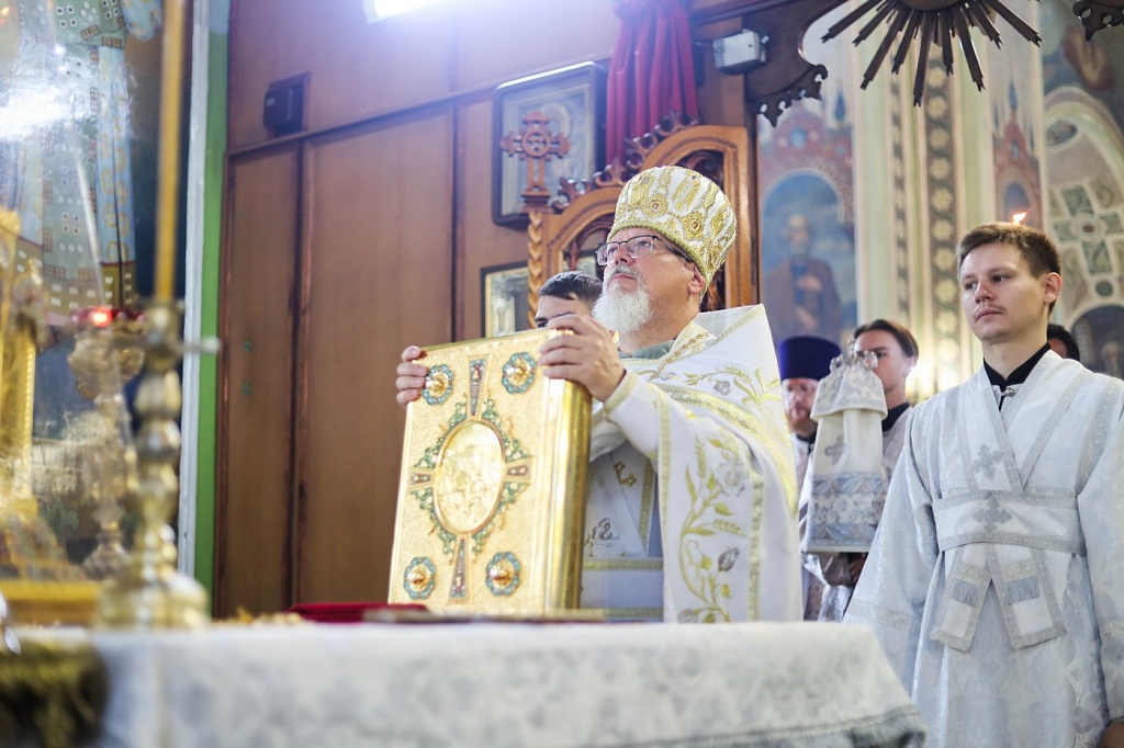 Настоятель храма, секретарь Челябинской епархии протоиерей Игорь Шестаков отмечал в этот день 55-летие. После богослужения правящий архиерей тепло поздравил отца Игоря с юбилеем.
