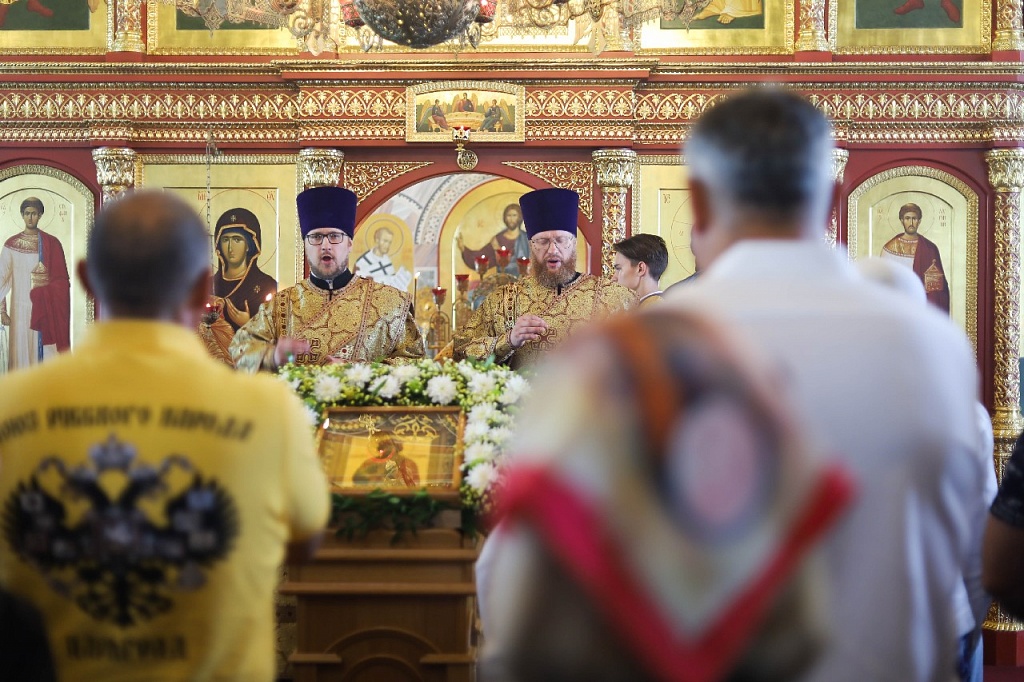После праздничного крестного хода митрополит Алексий поздравил верующих с праздником и произнес проповедь. Архипастырь напомнил, что благодаря князю Владимиру наше Отечество просветилось светом православной веры. Еще в детстве он узнал об истинах христианства от своей бабки княгини Ольги, но после Святого Крещения изменился совершенно — стал настоящим христианином.