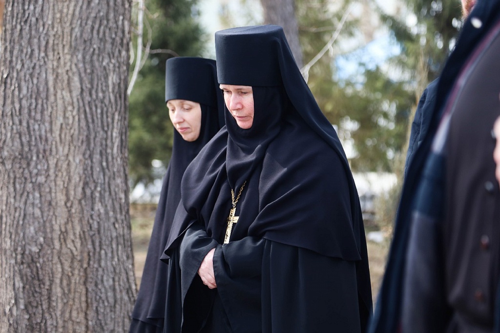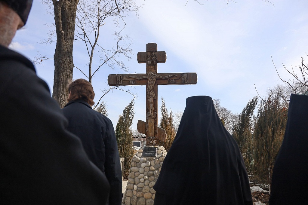 После службы архипастырь вознес молитву возле Поклонного креста, установленного на территории монастыря в память о сестрах и клириках дореволюционной обители.