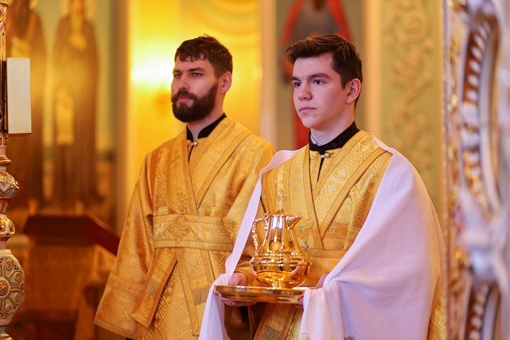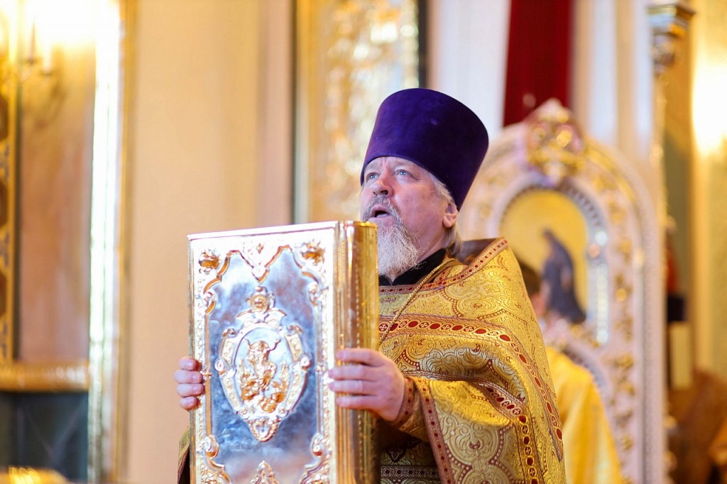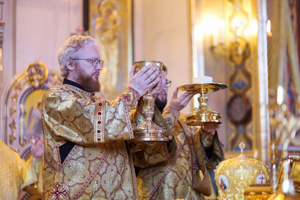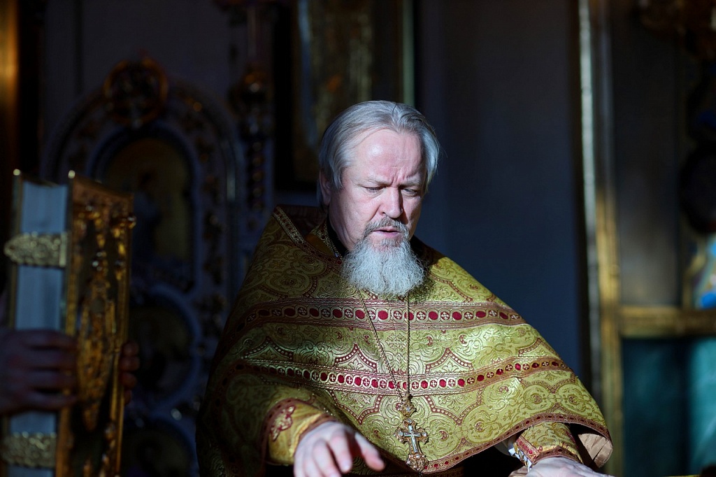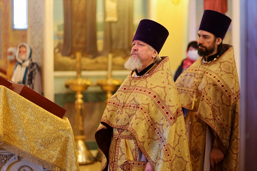 В слове перед причащением верующих клирик храма иерей Андрей Григорьев назвал вселенских учителей и святителей светильниками, стоящими на высоком месте и просвещающими умы христиан.