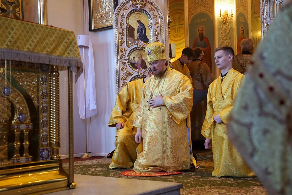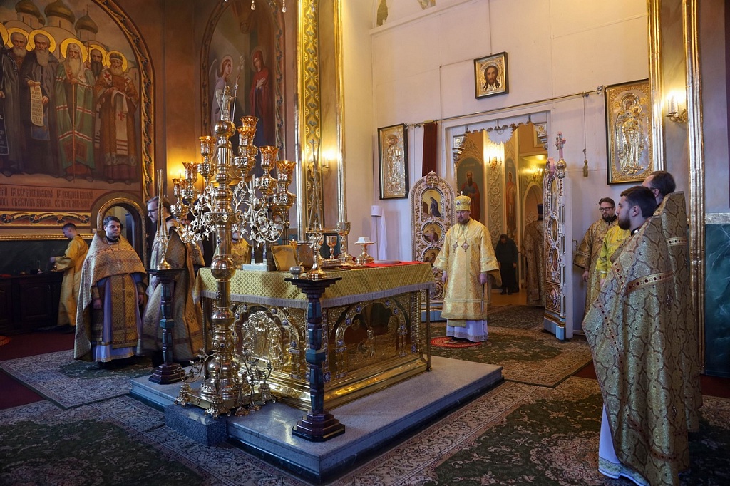 После Литургии митрополит Алексий и духовенство собора совершили молитву перед иконой Василия Великого, Григория Богослова и Иоанна Златоустого. Также правящий архиерей вознёс молитву о прекращении эпидемии преподобному Никифору Прокаженному.