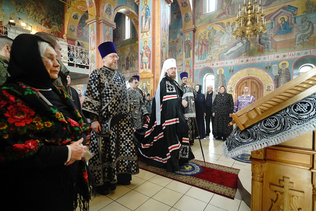 В четверг 5-й седмицы Великого поста митрополит Челябинский и Миасский Алексий совершил Литургию Преждеосвященных Даров в храме Преображения Господня в Чебаркуле.