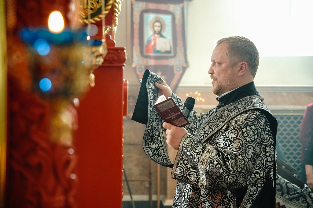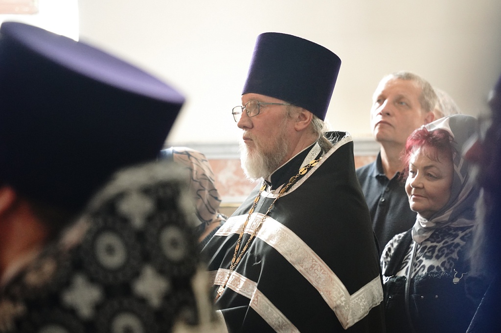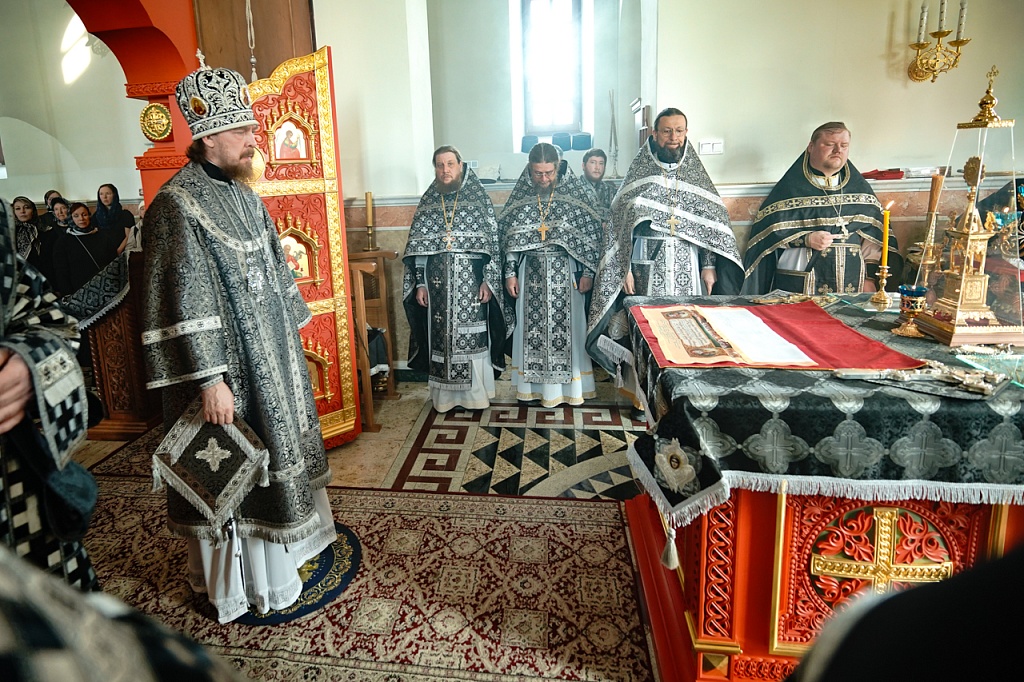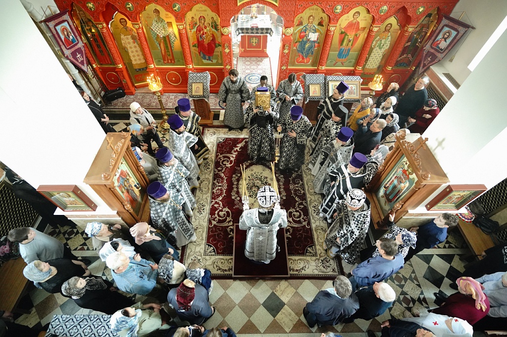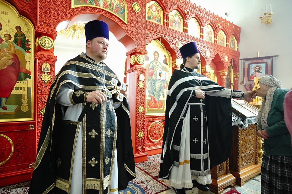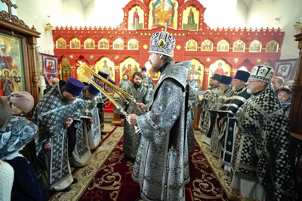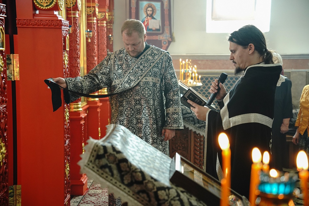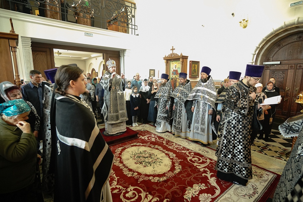 Правящему архиерею сослужили секретарь Челябинской епархии протоиерей Игорь Шестаков, благочинный Копейско-Коркинского благочиния и настоятель храма иерей Николай Невзоров, клирики благочиния. Песнопения службы исполнил Архиерейский квартет под управлением регента Марины Гоман.