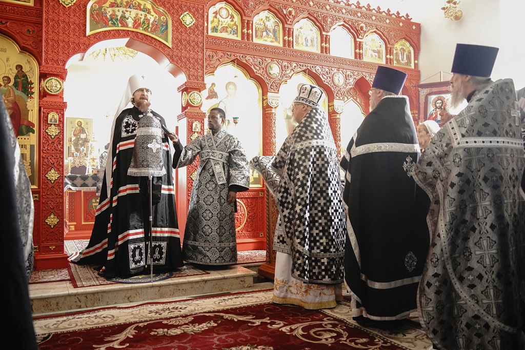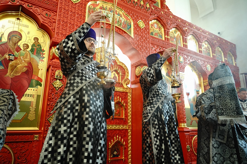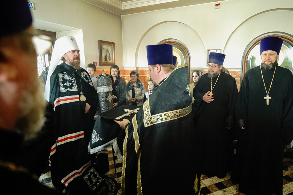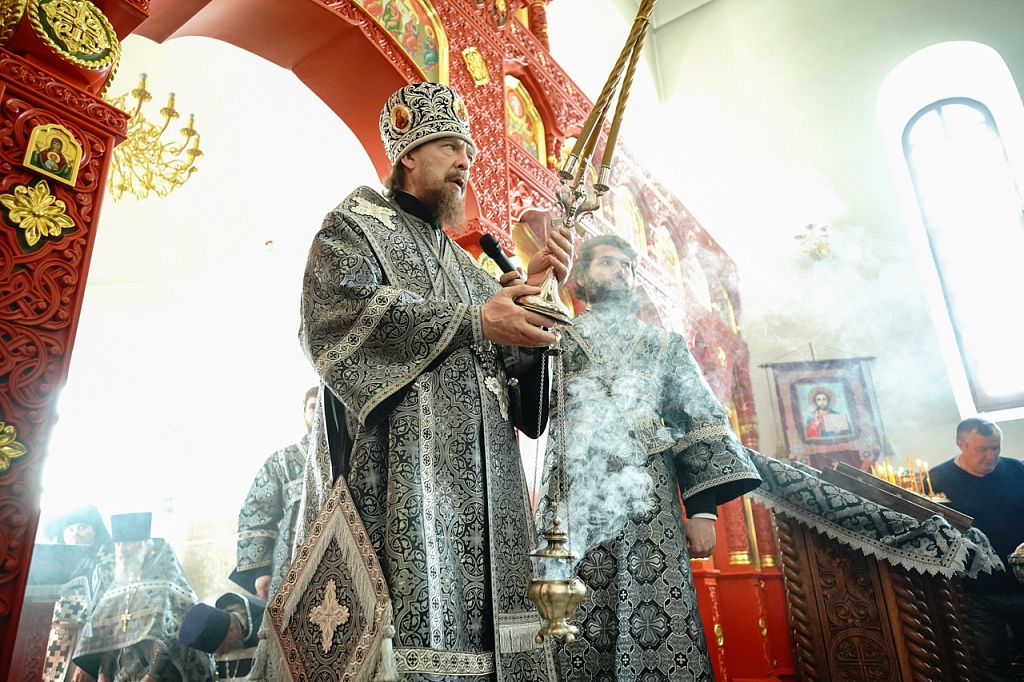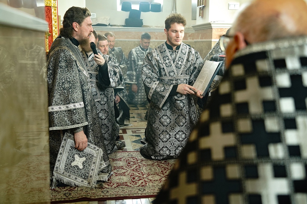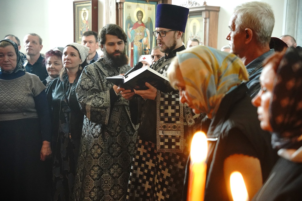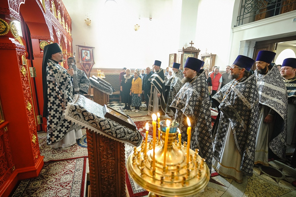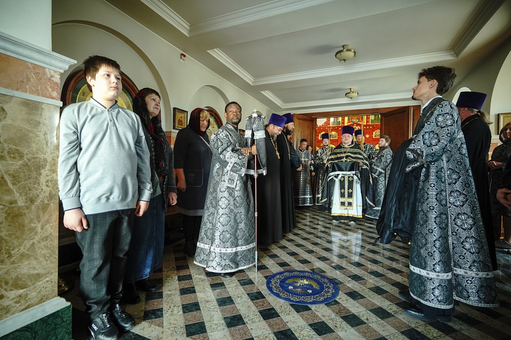 Правящему архиерею сослужили секретарь Челябинской епархии протоиерей Игорь Шестаков, благочинный Копейско-Коркинского благочиния и настоятель храма иерей Николай Невзоров, клирики благочиния. Песнопения службы исполнил Архиерейский квартет под управлением регента Марины Гоман.