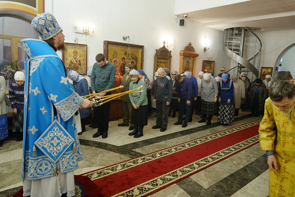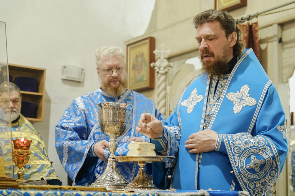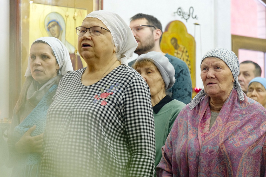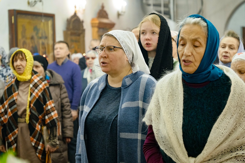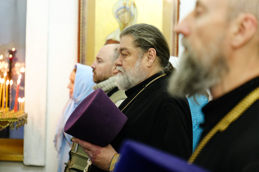 Правящему архиерею сослужили благочинный Центрального округа протоиерей Сергий Севастьянов и клирики храма. Песнопения службы исполнил Архиерейский хор под управлением регента Марины Гоман.