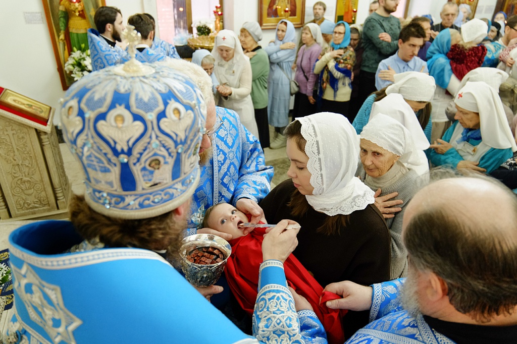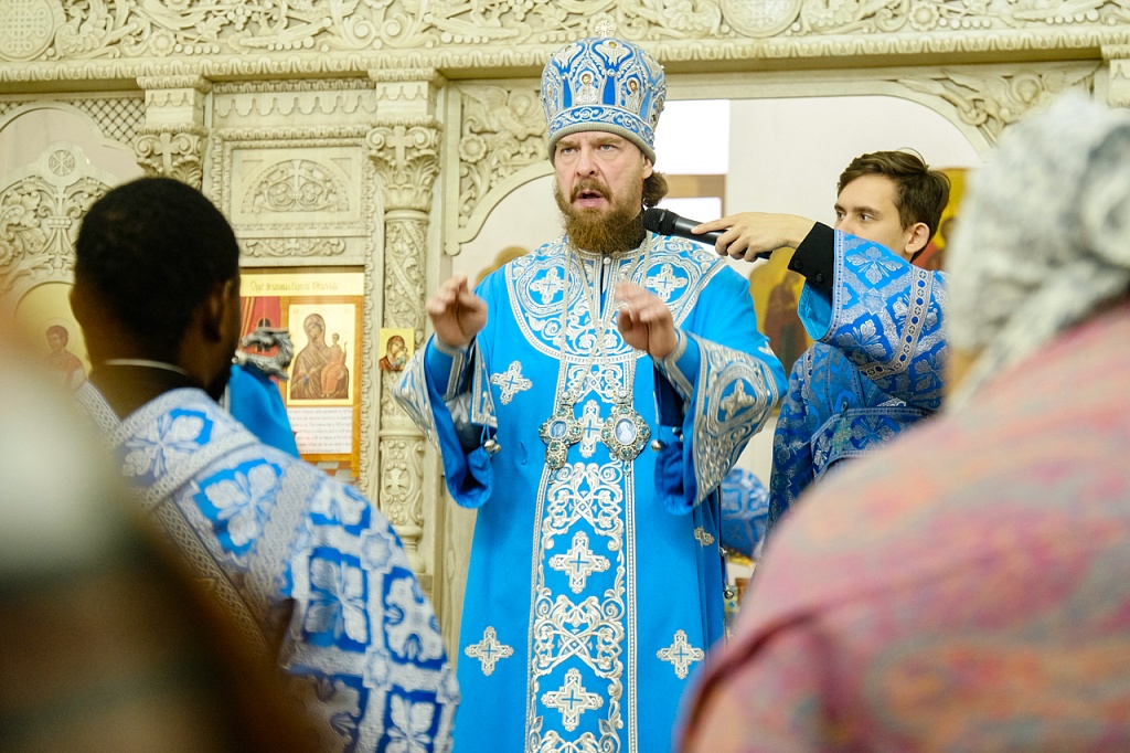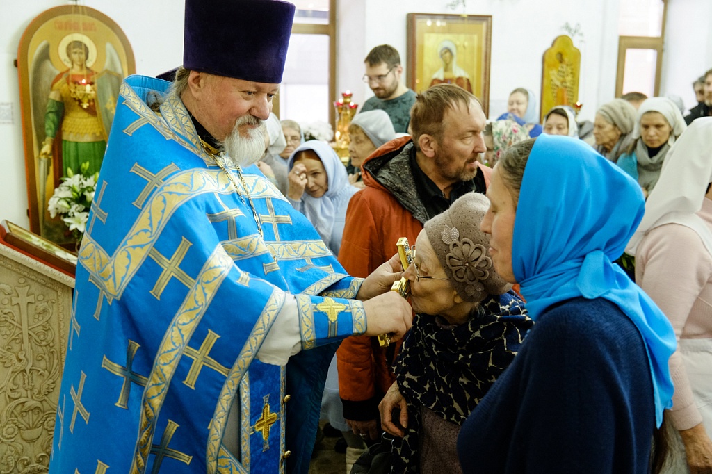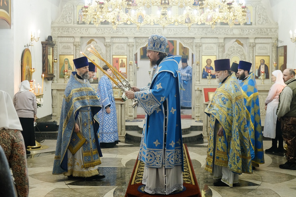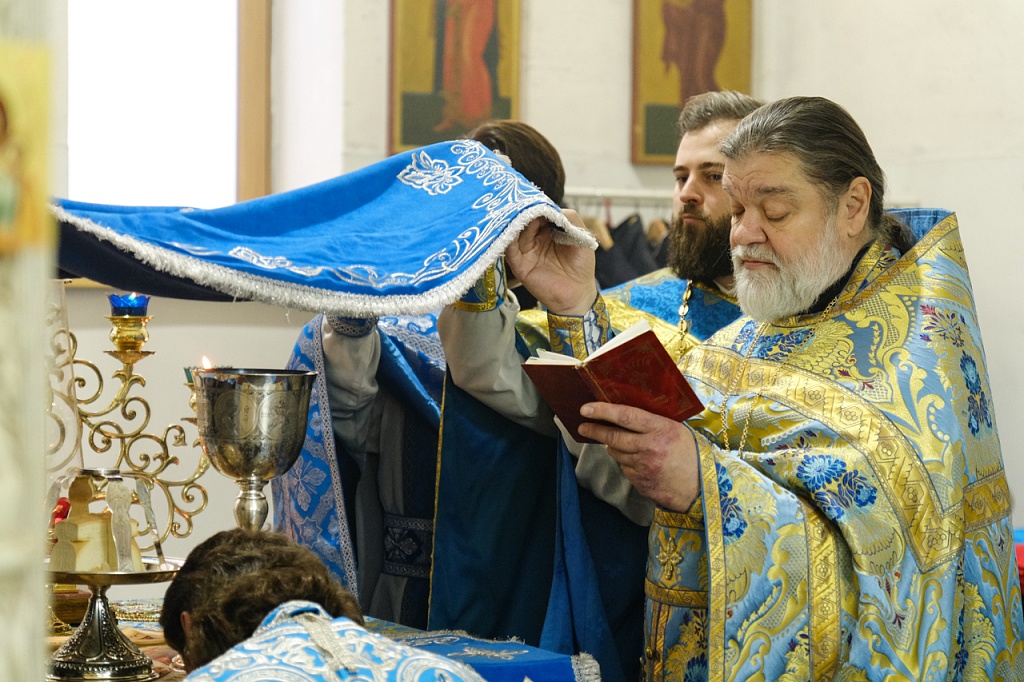 Правящему архиерею сослужили благочинный Центрального округа протоиерей Сергий Севастьянов и клирики храма. Песнопения службы исполнил Архиерейский хор под управлением регента Марины Гоман.
