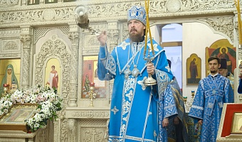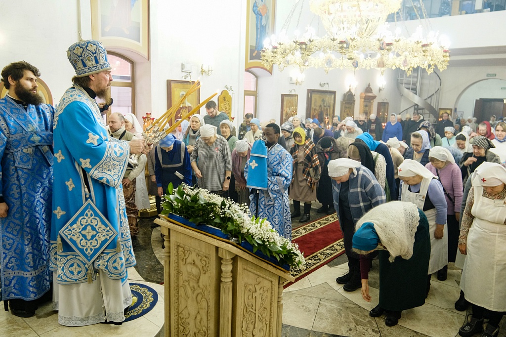 Архипастырь поздравил прихожан с престольным торжеством и окропил в честь праздника святой водой.