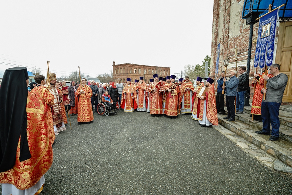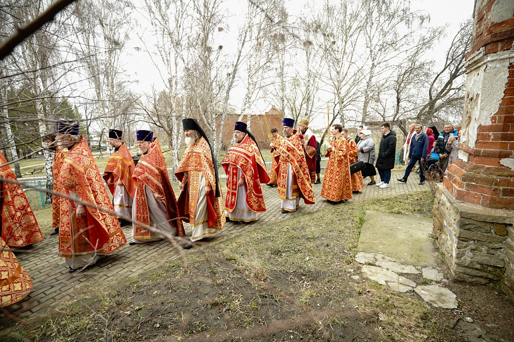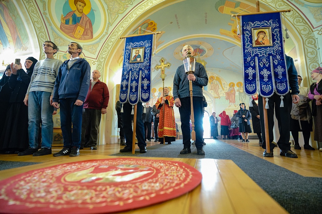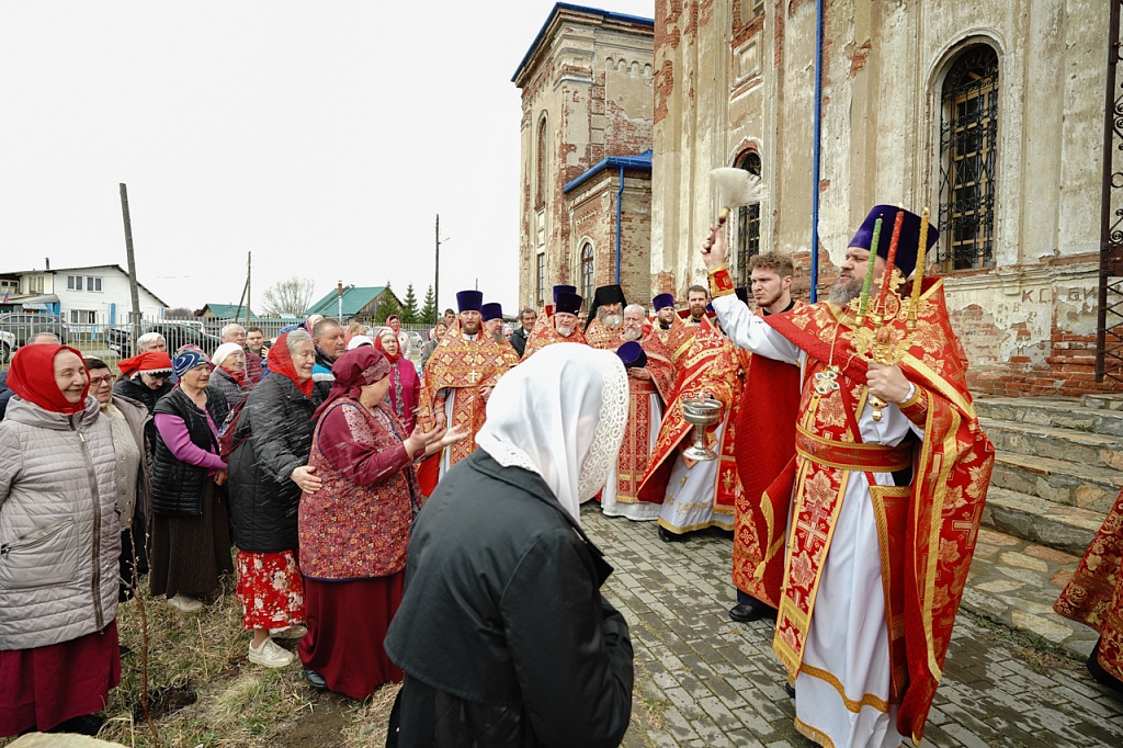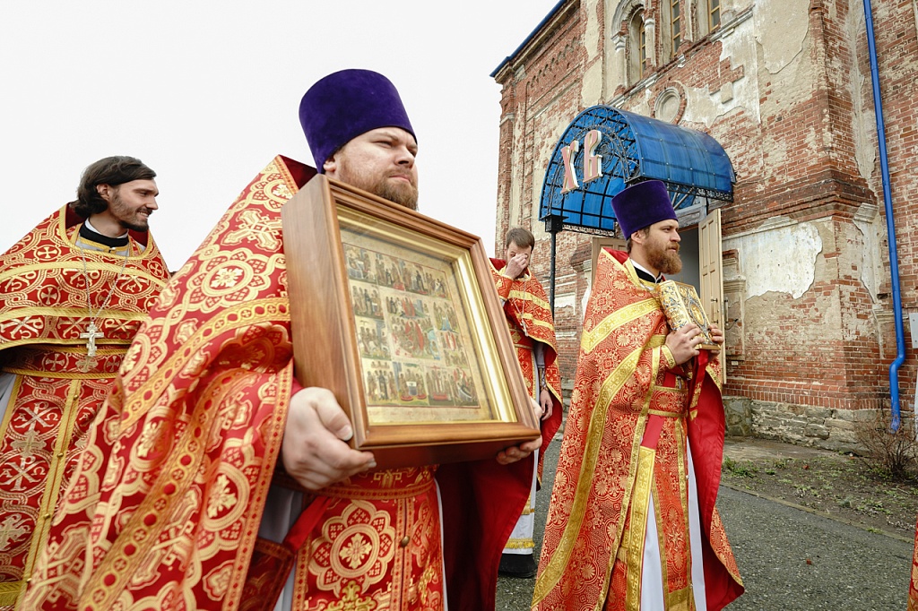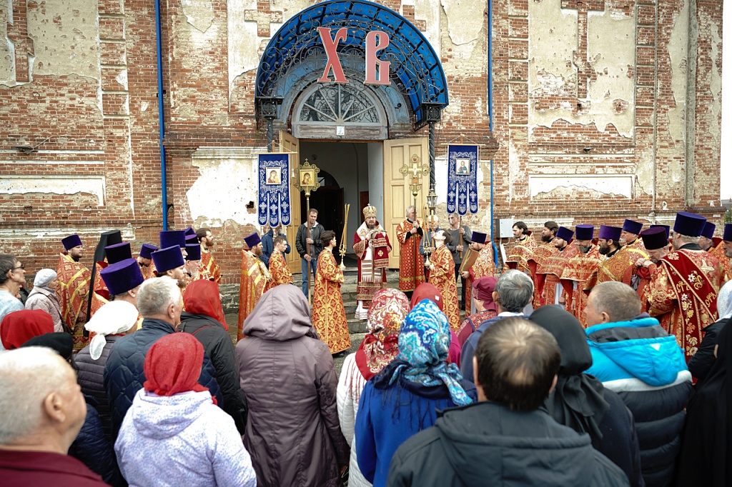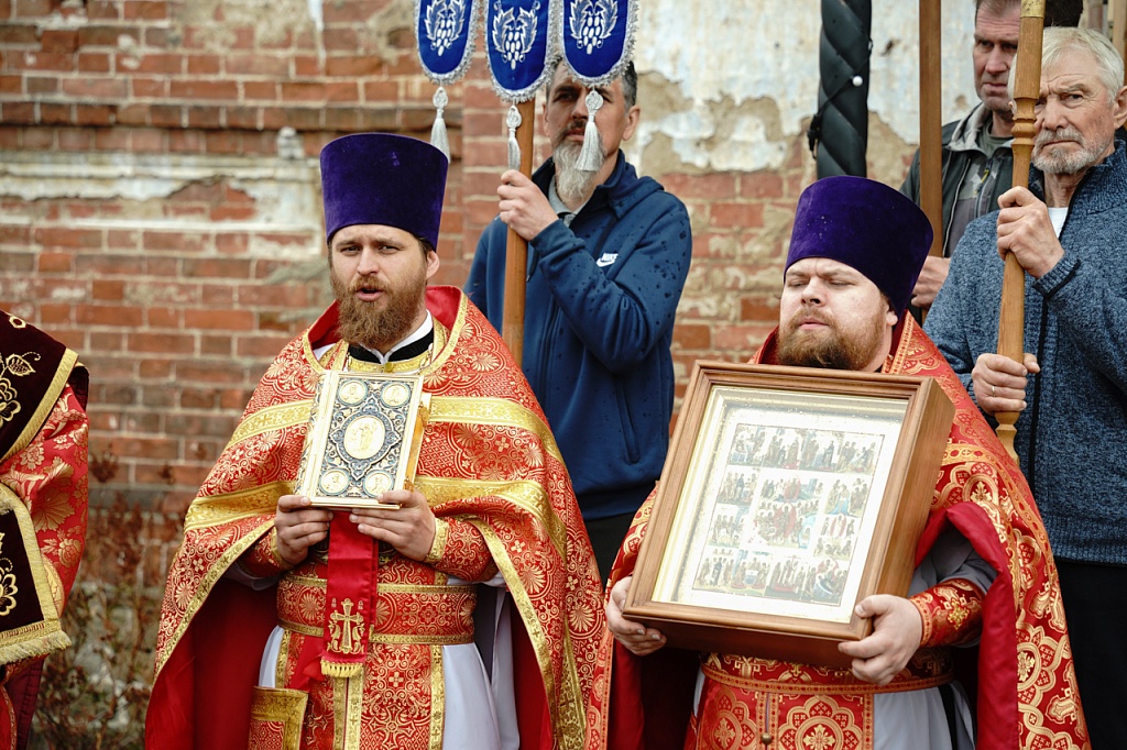 Духовенство и верующие обошли старинный храм крестным ходом. В завершение службы было пропето многолетие Святейшему Патриарху Кириллу, властям и воинству, всем православным христианам.
