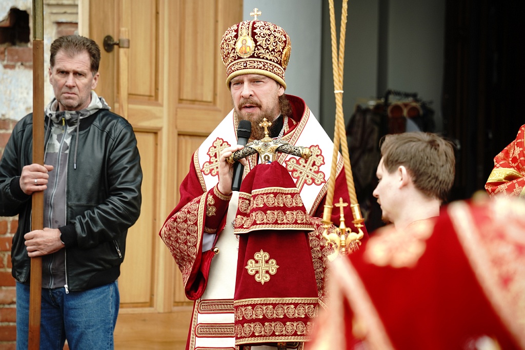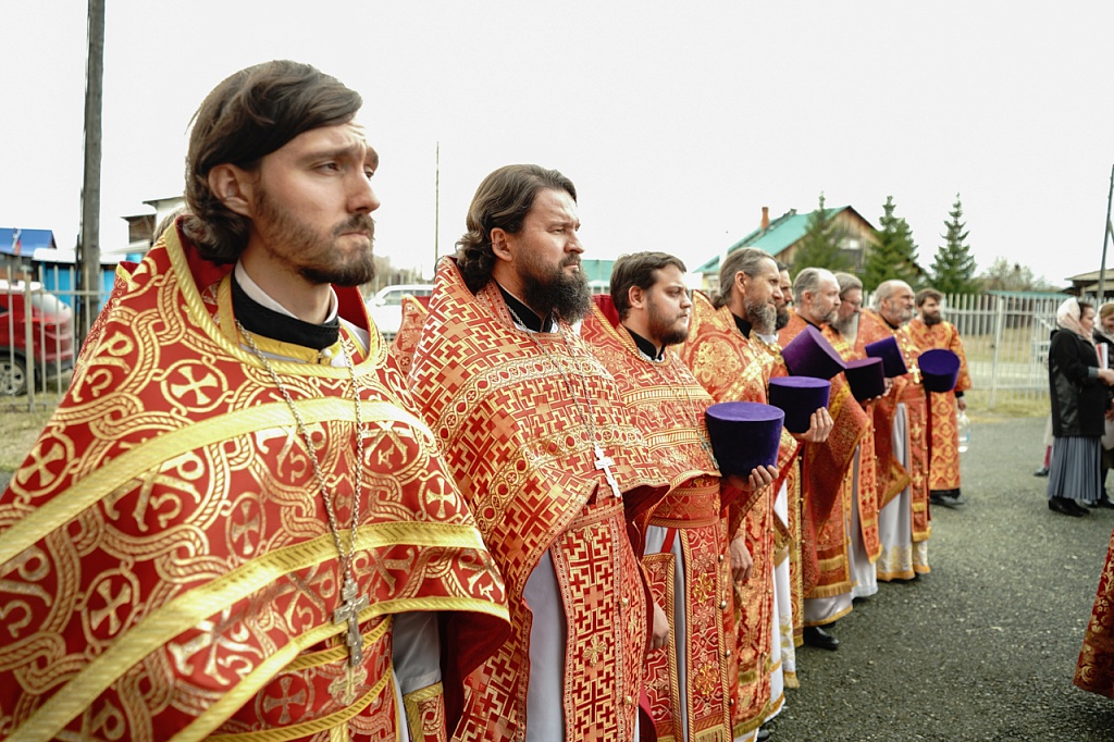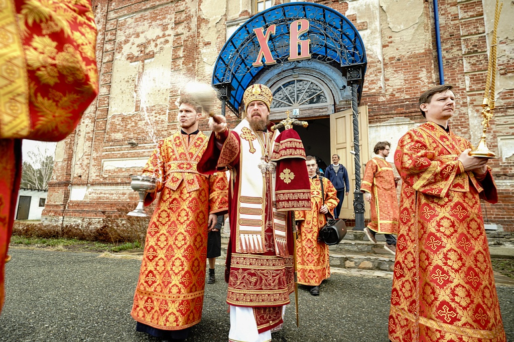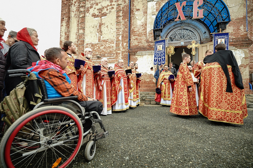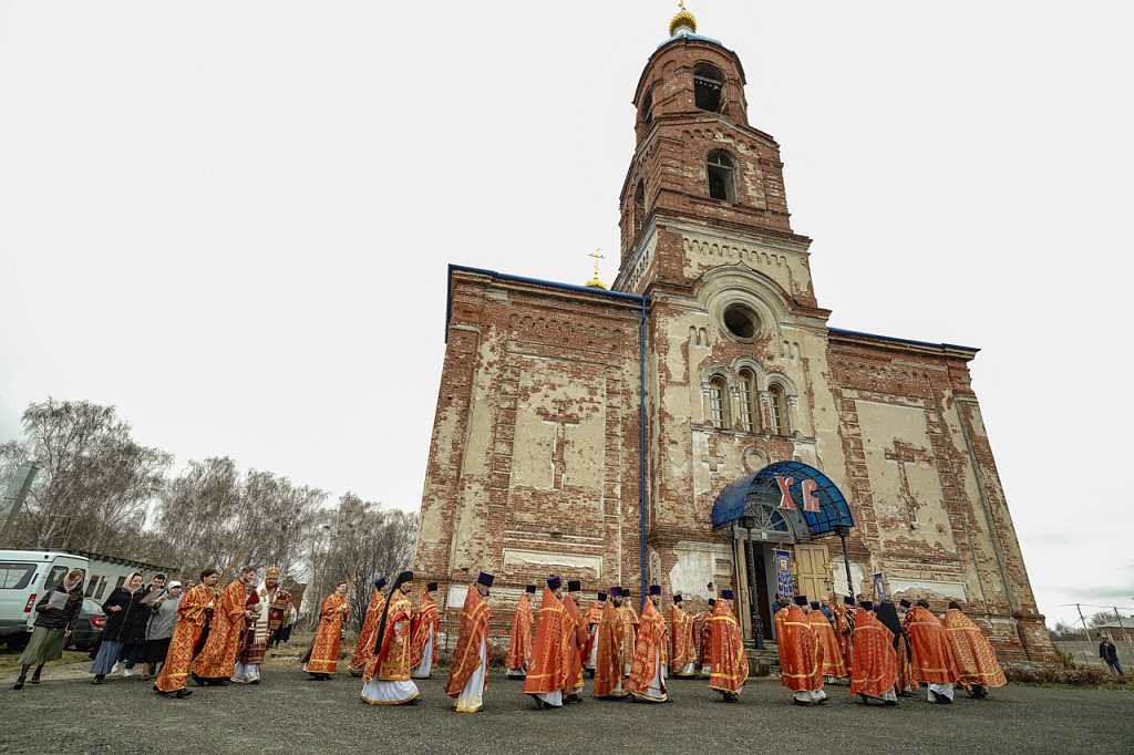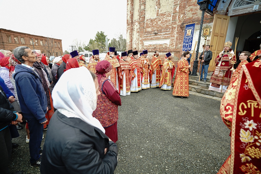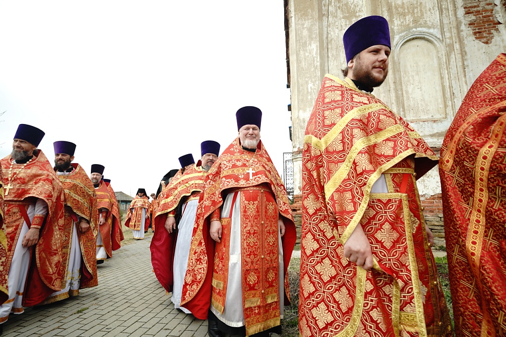 Духовенство и верующие обошли старинный храм крестным ходом. В завершение службы было пропето многолетие Святейшему Патриарху Кириллу, властям и воинству, всем православным христианам.