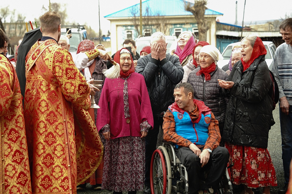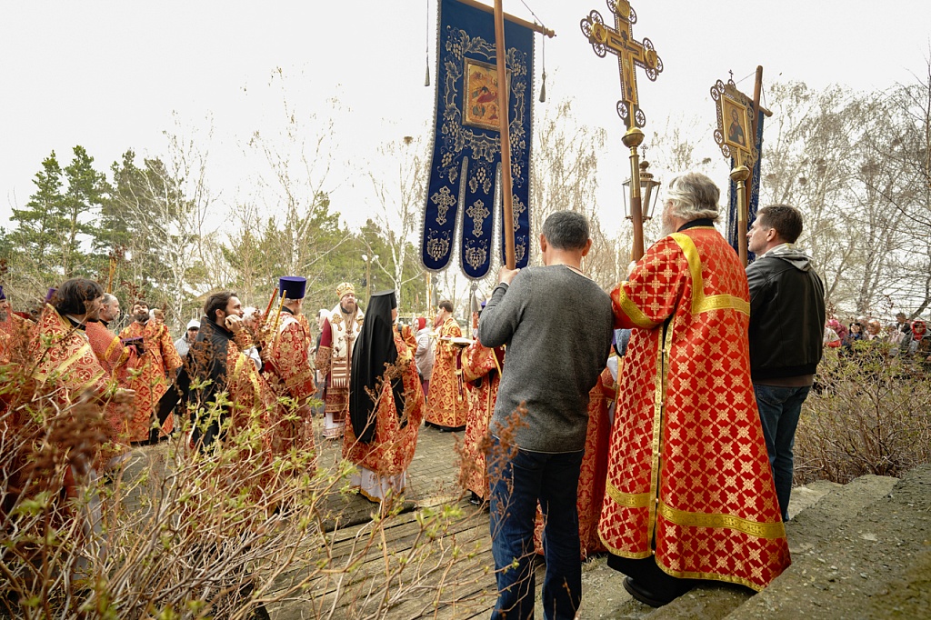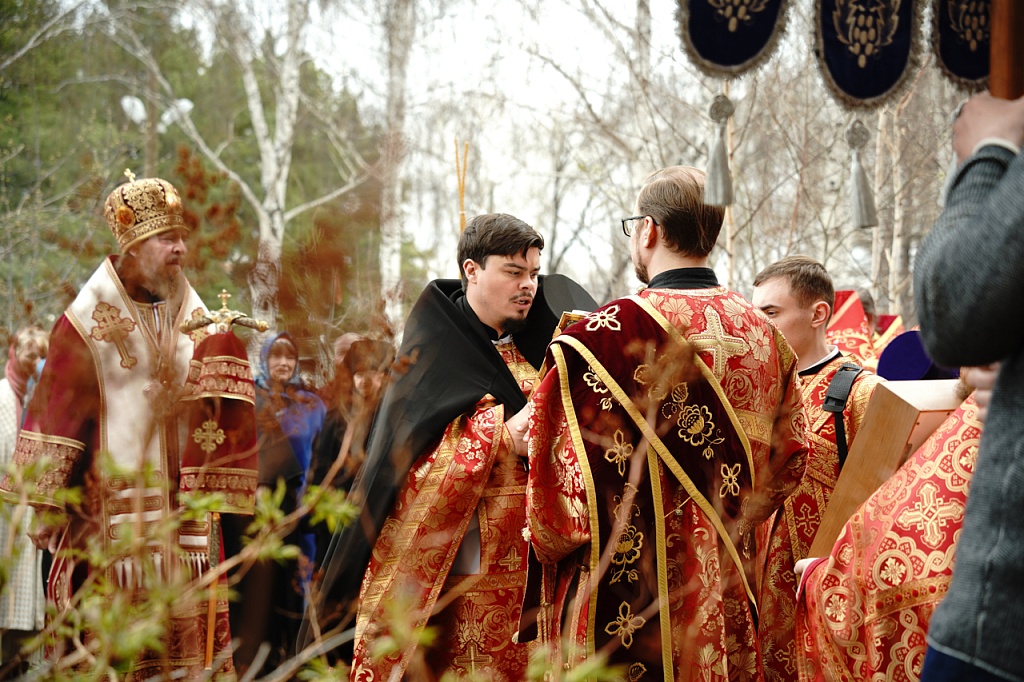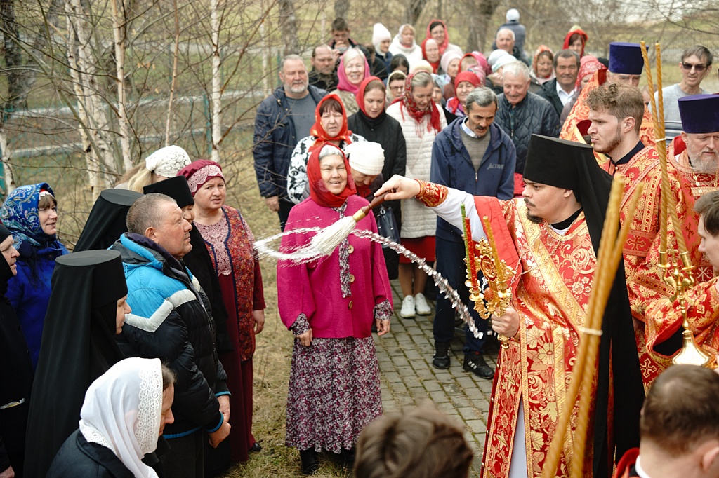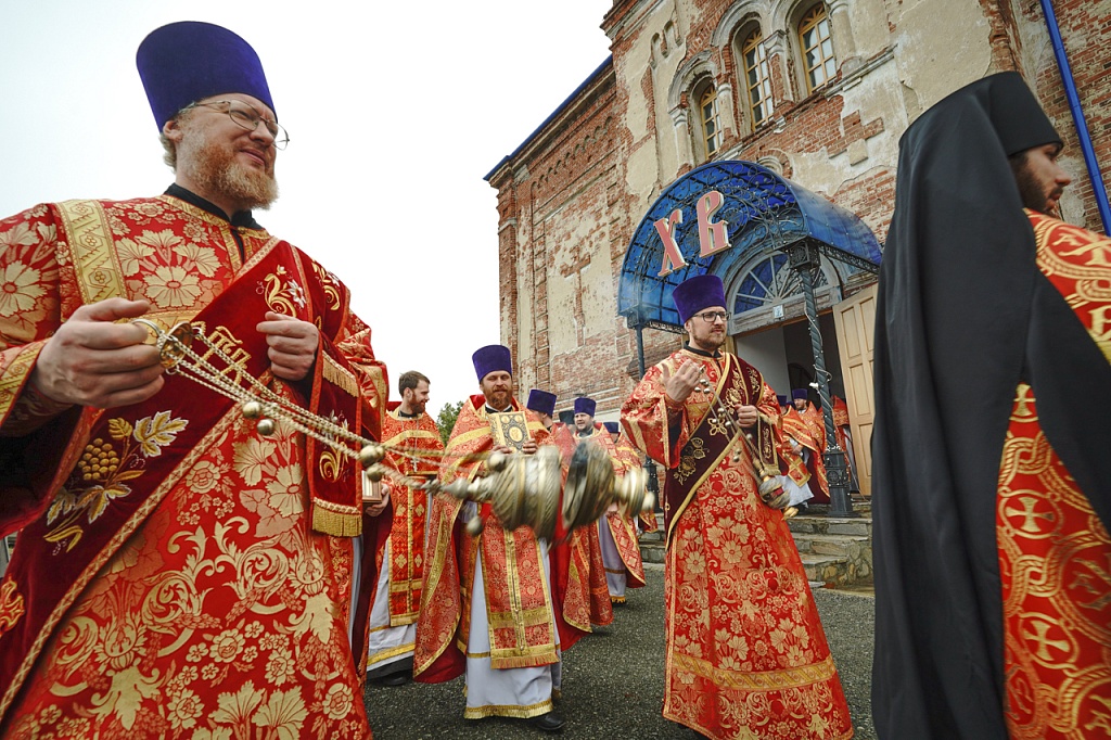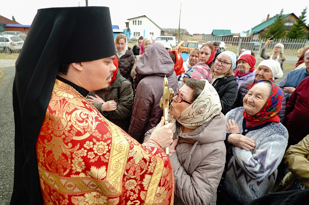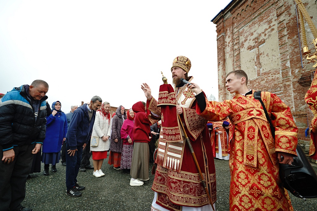 Духовенство и верующие обошли старинный храм крестным ходом. В завершение службы было пропето многолетие Святейшему Патриарху Кириллу, властям и воинству, всем православным христианам.