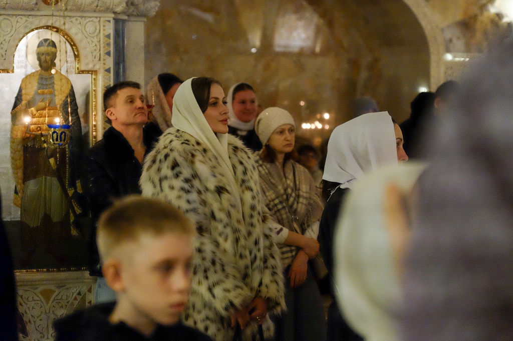 В новогоднюю ночь в храм пришли многие челябинцы. На сугубой ектении была вознесена молитва о Святой Руси, которую прихожане слушали коленопреклоненно.