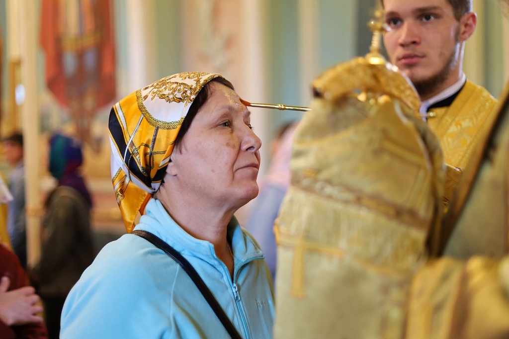 Во время чтения канона митрополит Алексий помазал верующих освященным елеем.