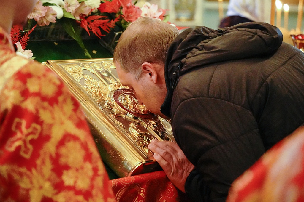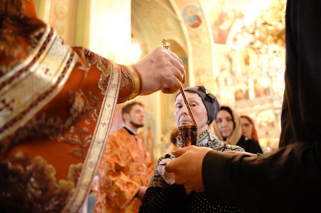 Во время пения канона Пасхи владыка Алексий помазал верующих освященным елеем. В конце богослужения духовенство кафедрального собора пропело величание Воскресению Христову.