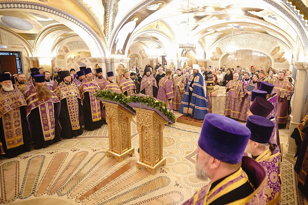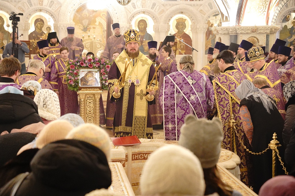 Вечером 1 марта митрополит Челябинский и Миасский Алексий совершил общегородской чин Торжества Православия в нижнем храме собора Рождества Христова.