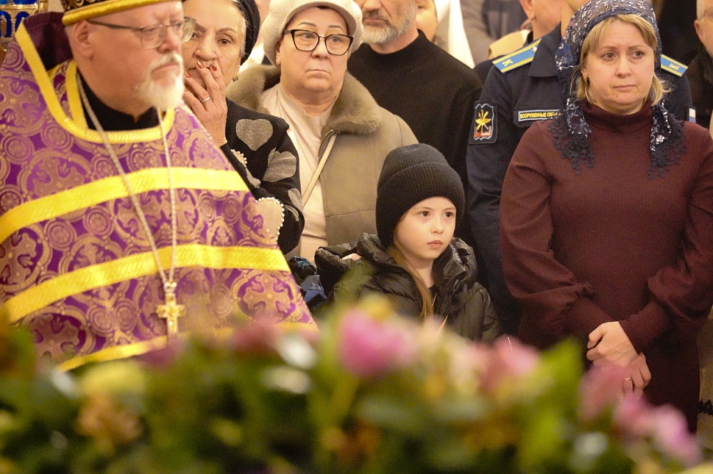 Песнопения службы исполнил смешанный хор двух кафедральных соборов Челябинска – Христорождественского и Свято-Симеоновского, под управлением регента Марины Гоман. На общегородскую службу пришло множество прихожан челябинских храмов.